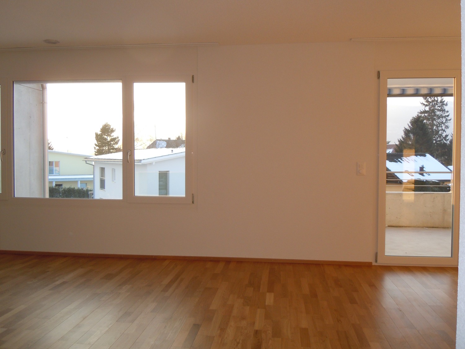 *einen 16m2 grossen Balkon mit Abendsonne und dimmbaren Einbauspots.