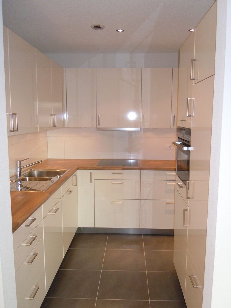 *eine moderne Küche mit Reduit, selbst reinigender Backofen mit integrierter Mikrowelle.
