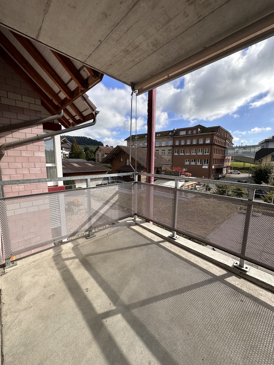 Balkon mit Aussicht: Genügend Platz für Lounge, Pflanzen oder Frühstück in der Morgensonne.