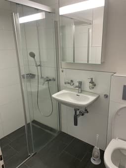2,5 Zimmer Wohnung mit Waschmaschine pro Wohnung im Treppenhaus, und Tumbler im Untergeschoss.