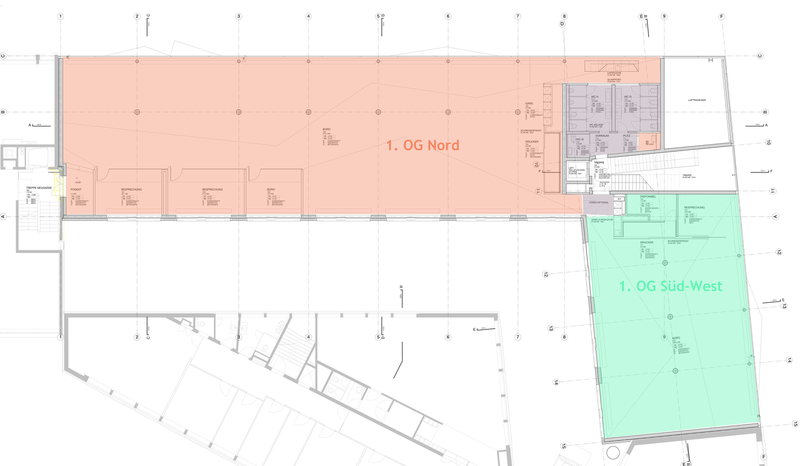 Alle Flächen sind komplett ausgebaut inkl. Teeküche, Garderoben und Toilettenanlagen und quasi bezugsbereit.