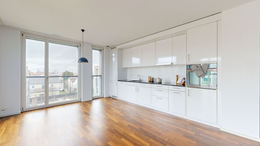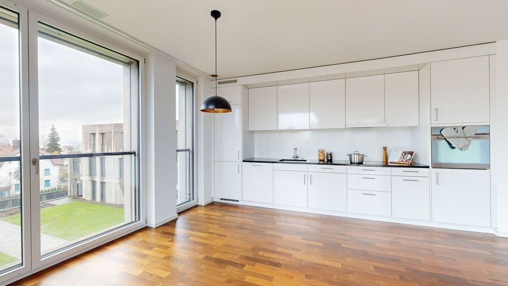 - Küche und Nasszellen mit pflegeleichtem Plattenboden