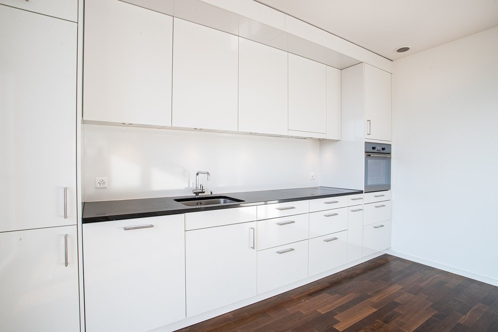 - Küche und Nasszellen mit pflegeleichtem Plattenboden