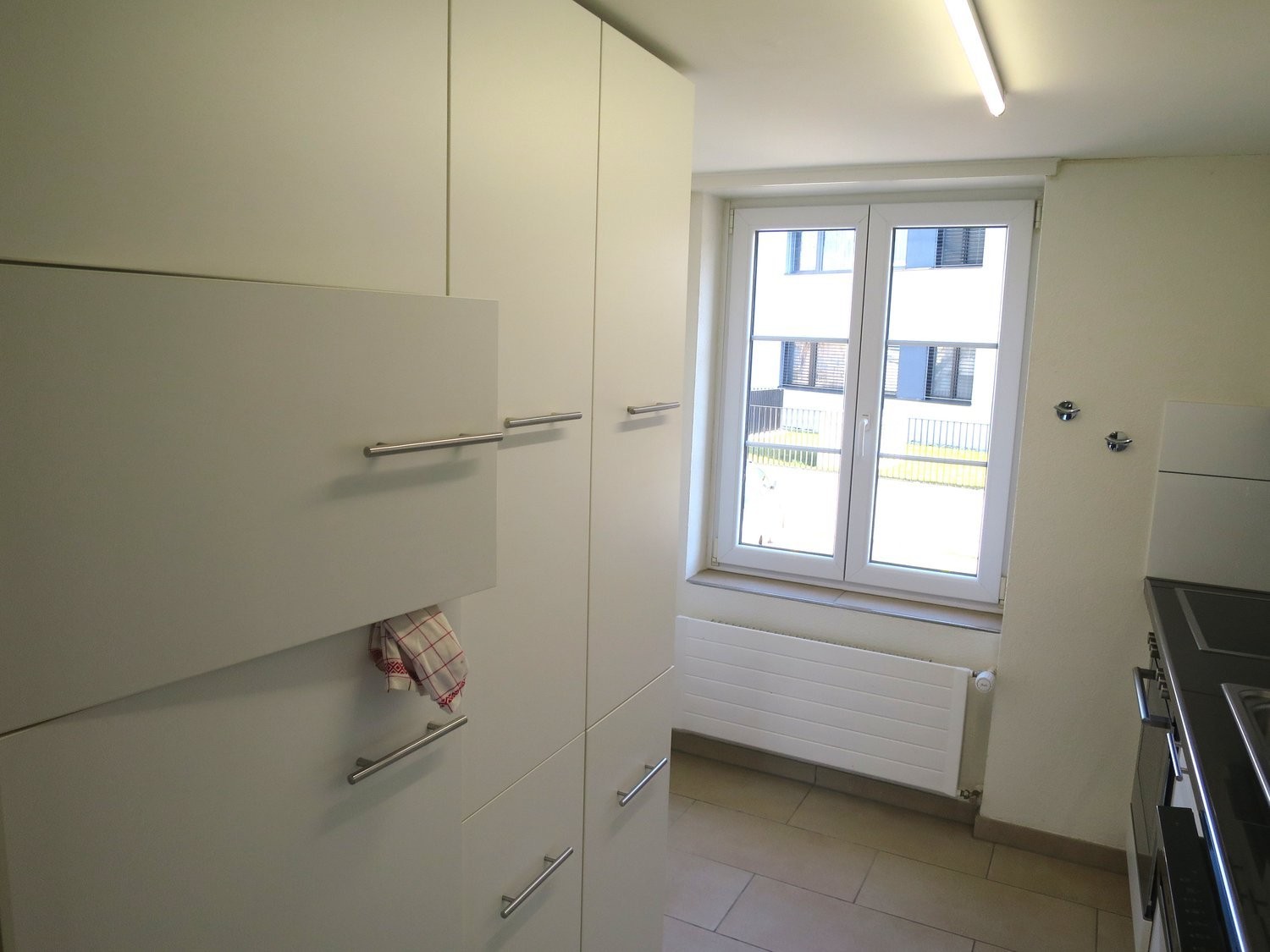 Weisse Schränke und Fliesenboden: Stilvolle und pflegeleichte Ausstattung