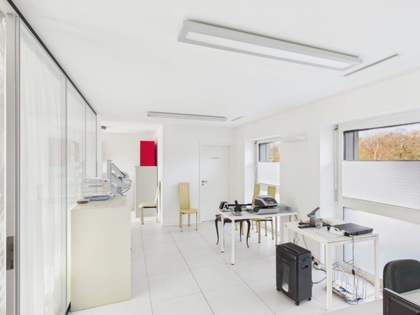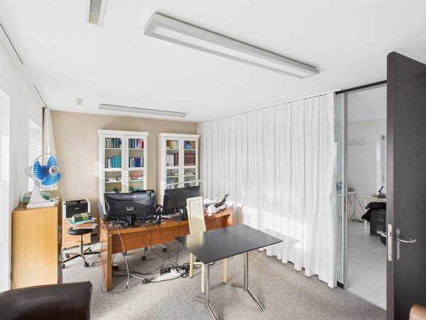 Cette dernière est composée d'une entrée, d'un vaste open space, d'un bureau fermé, d'une cuisine habitable et d'un WC.