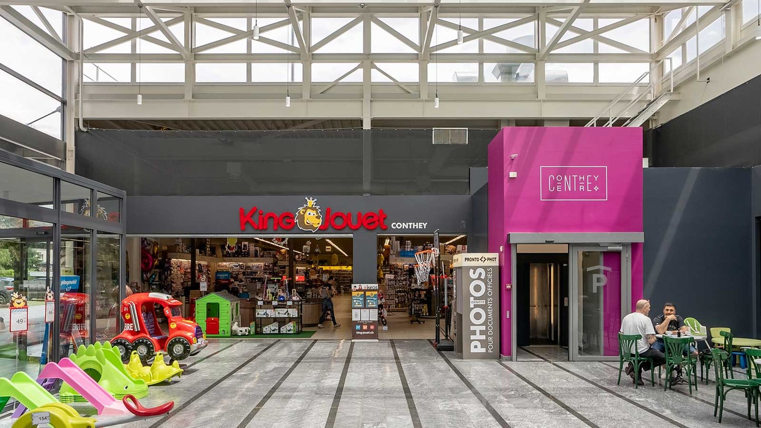 À louer, surface commerciale composée de 304m² de surface au sol et de 80m2 de mezzanine dans un centre commercial en pleine revitalisation et relooking, bénéficiant de la fréquentation générée par les grandes enseignes en place, Coop et King-Jouet, ainsi que la nouvelle Pharmacie de Conthey avec Drive-In, récemment installée. Un restaurant italien, un coiffeur et un kiosque complètent l'offre du centre.