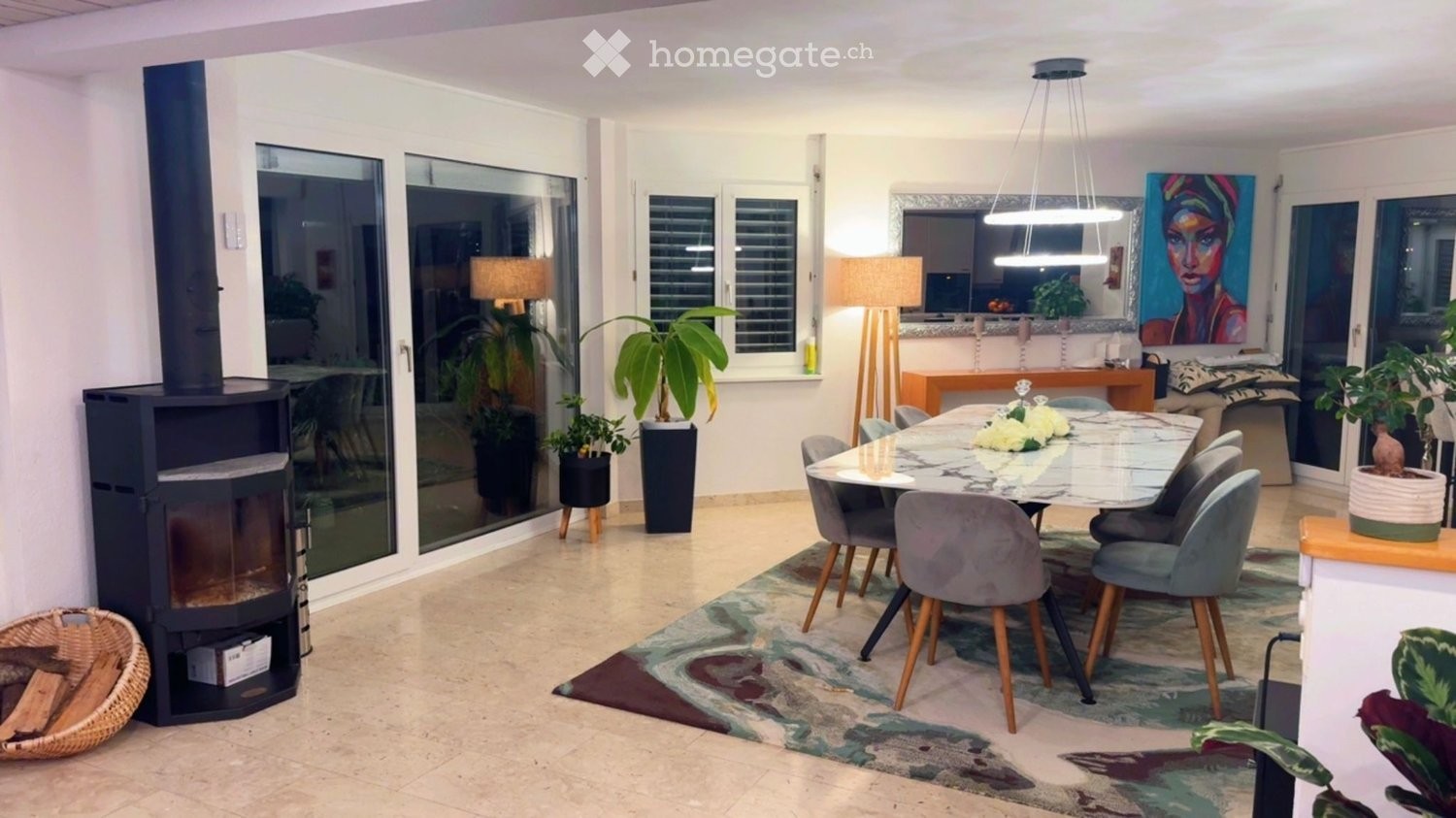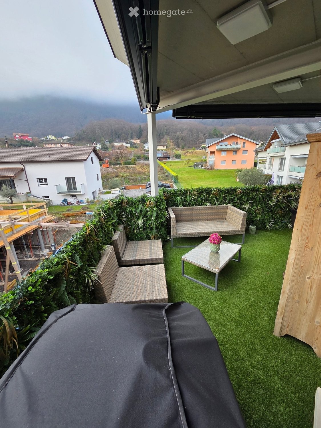 Magnifique appartement en duplex de 5.5 pièces aux Evouettes. ~200m2. 2ème étage. Très grand salon-séjour, cuisine agencée, 3 chambres à coucher, 3 salles d'eau, 3 réduits de rangement, 1 buanderie privative (avec un coffre-fort de classe 2), 4 balcons dont 1 en baignoire. 1 garage privatif avec borne de recharge, 2 places de parc extérieures, 1 local chauffée de 25 m2 au sous-sol. Calme absolu. à 5min de la sortie autoroute de Villeneuve et de la zone commerciale. A 5min du lac. Loyer charges forfaitairement incluses Fr. 4'500.-