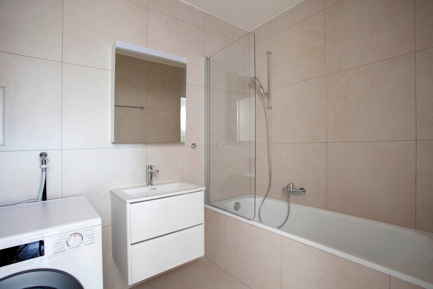 Il dispose également de deux chambres pourvues d'armoires murales, d'une salle de bains équipée d'une colonne de lavage ainsi que d'un WC séparé.