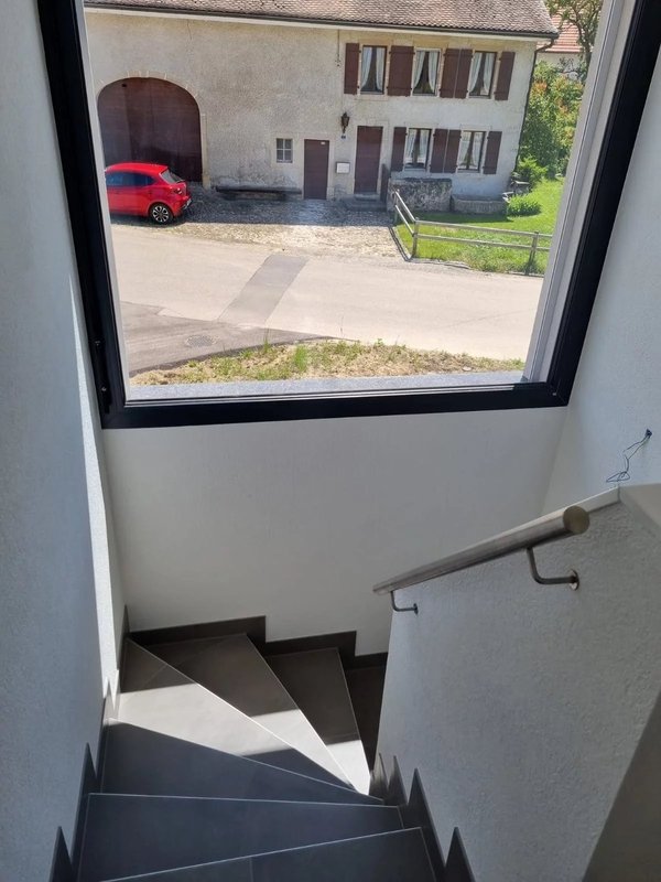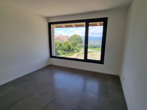 Dans un petit village du district du Jura-Nord vaudois, dominant la plaine de l'Orbe. Construction récente.