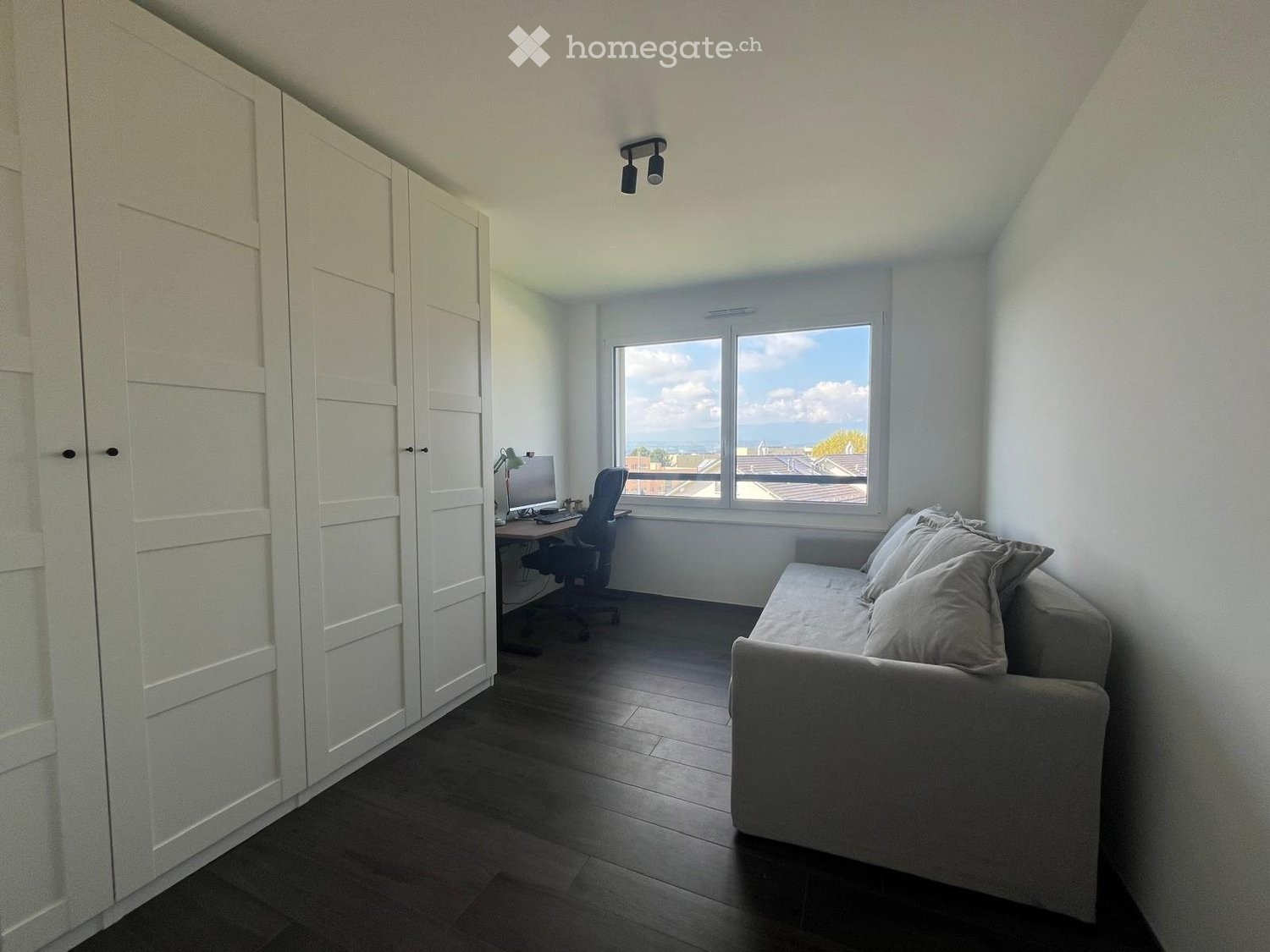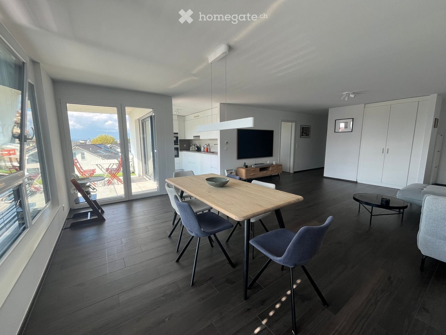Reprise de bail 3.5 pour 1 December : bel appartement moderne de 3.5 pièces, première occupation en 2024. Situé au 1er étage, il offre 105 m² de surface habitable et un balcon.
