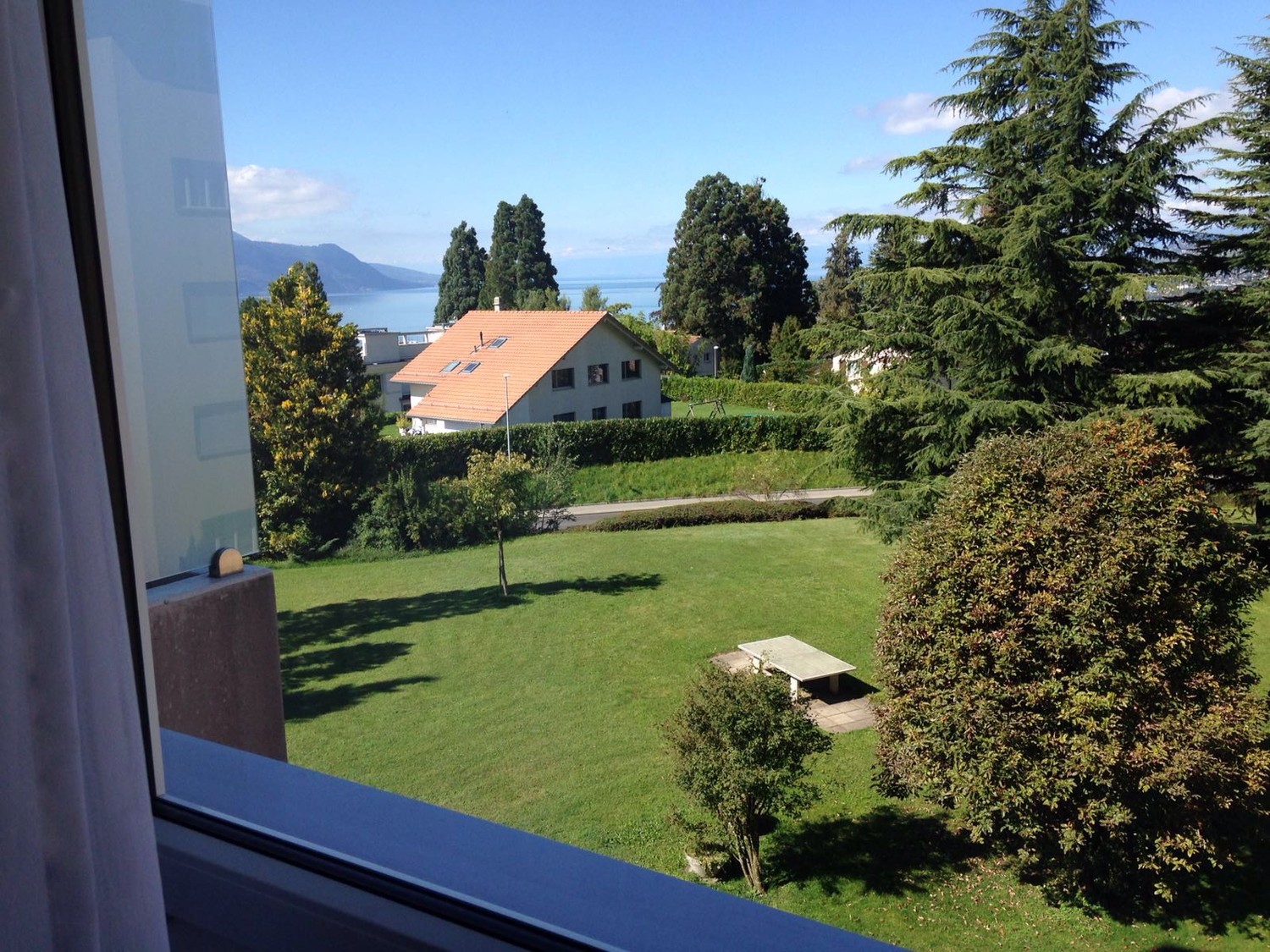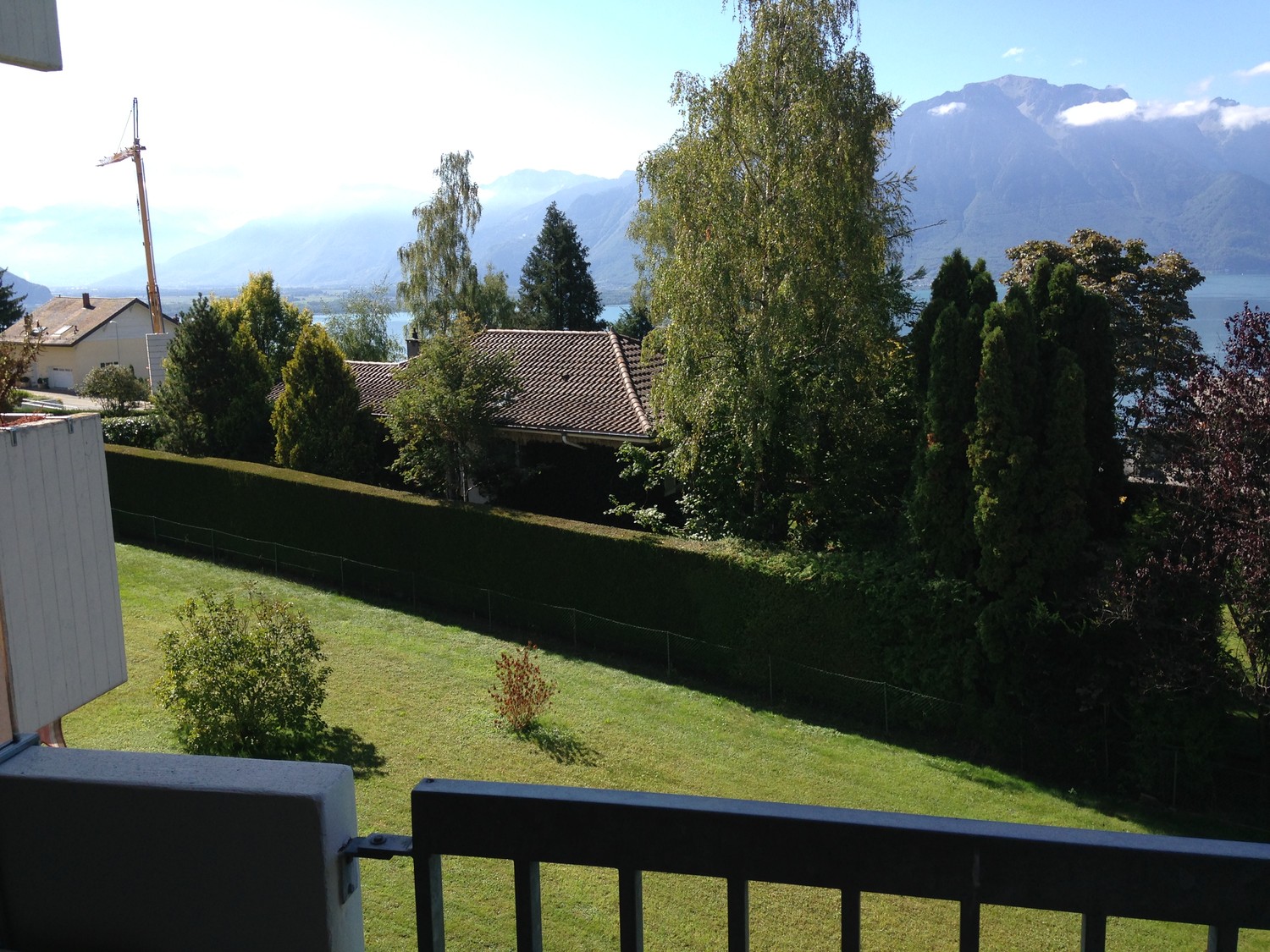 La chambre se trouve dans une co-propriété, avec un balcon, dans le calme avec une vue imprenable sur le lac et les alpes.