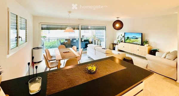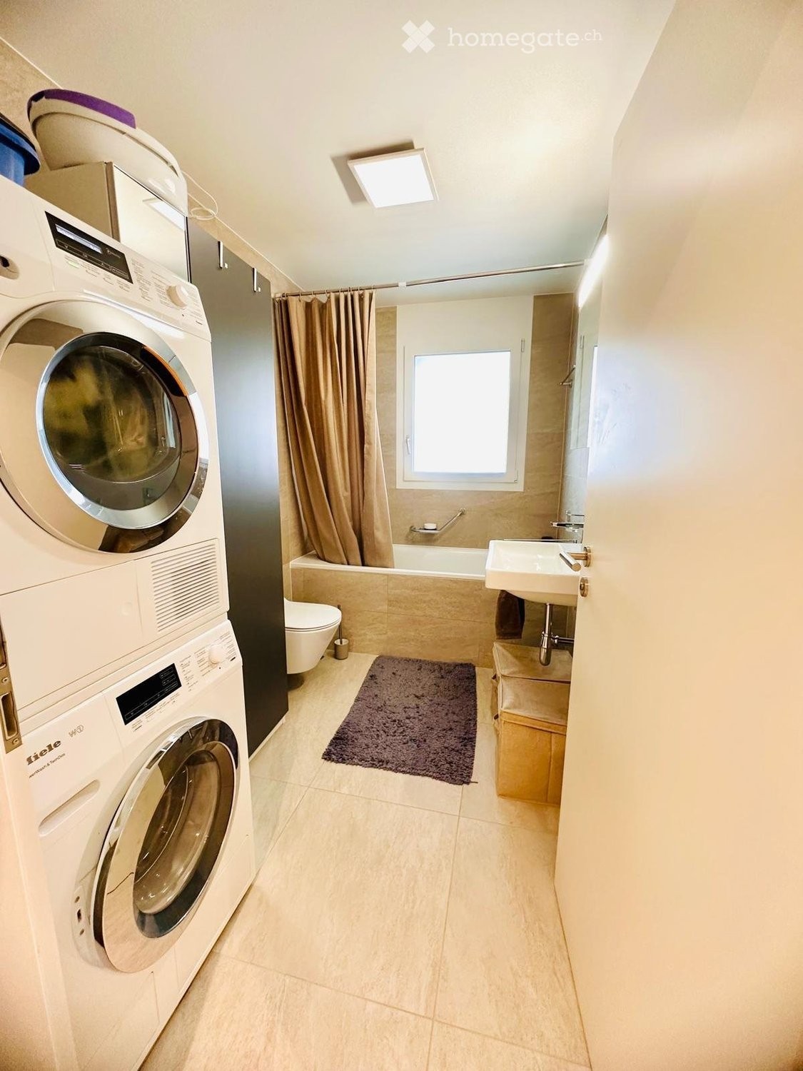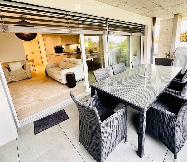 L'apartement (ascenseur, 9 appartements) avec deux terrasses spacieuses. Chauffage au sol, cuisine américaine entièrement équipée avec îlot relié à un mur (réfrigérateur/congélateur, cuisinière, four, lave-vaisselle inclus). Arrêt de bus à proximité.