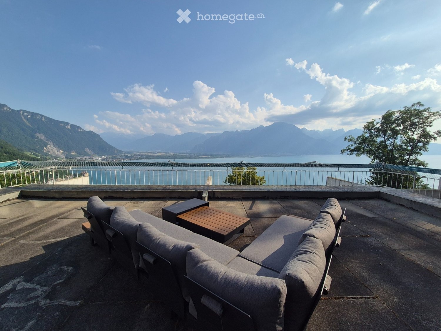 Terrasse panoramique de 100 m² avec vue imprenable sur le lac