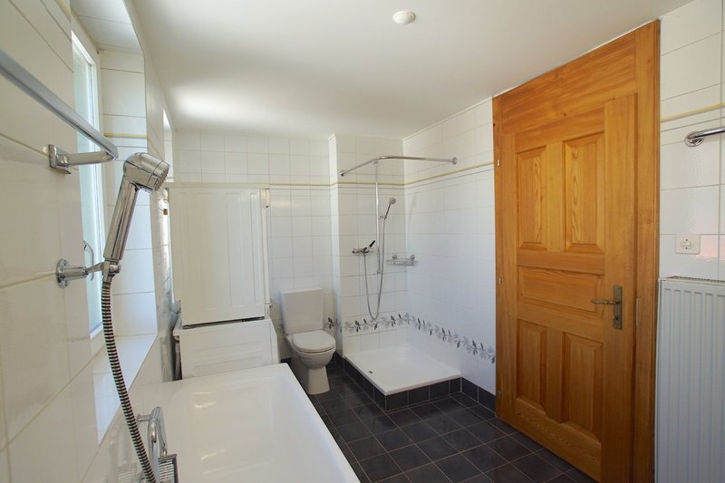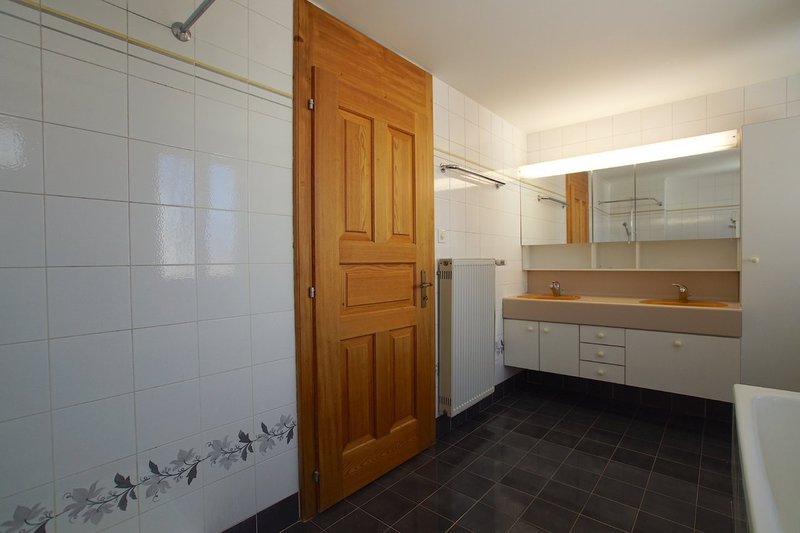 - Une salle de bain de 9m2 avec baignoire, douche, double-lavabo, lave-linge et sèche-linge