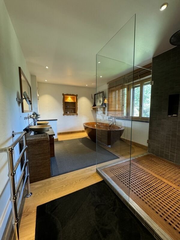 Zur Wohnung gehören 3 Autoeinstellhallenplätze, sowie ein Disponibelraum und zwei Studios im Untergeschoss. Das Chalet verfügt über einen Lift, der alle Geschosse verbindet und der direkt in die Wohnung führt.