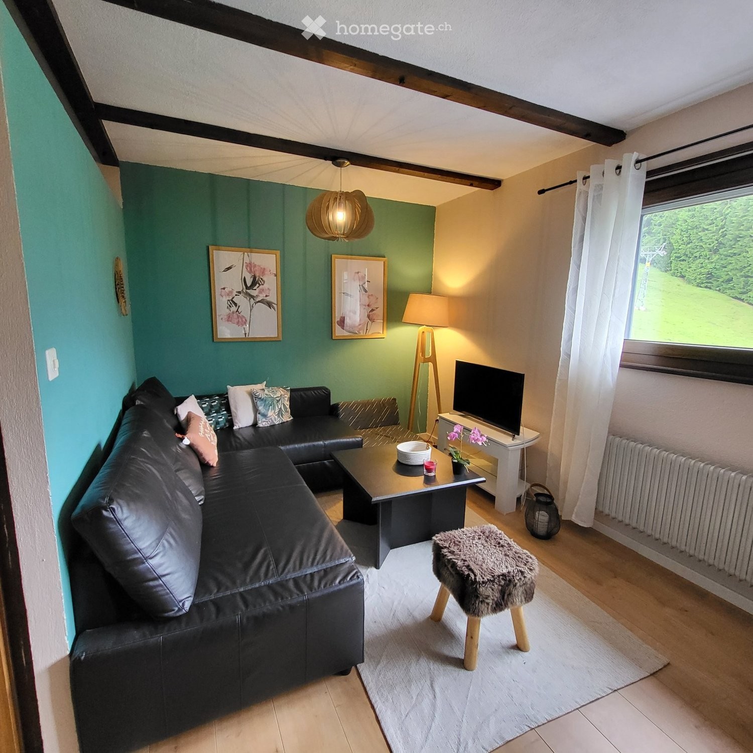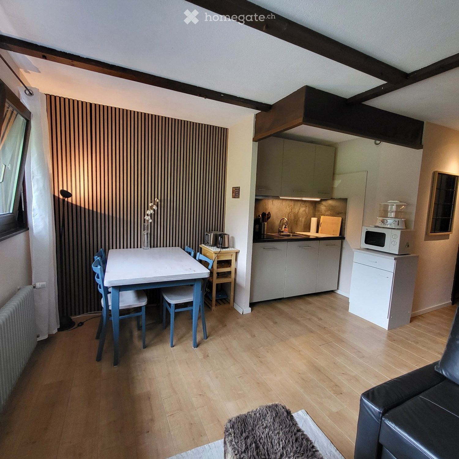 Le prix de location de 800 CHF inclut le WiFi, leau, le chauffage et labonnement télé. Le contrat déléctricité nest pas inclus. Lappartement est équipé avec un canapé-lit, télé, table à manger, un lit double et un lit mezzanine, vaisselle, casserolles, micro-ondes et lave-vaisselle.
