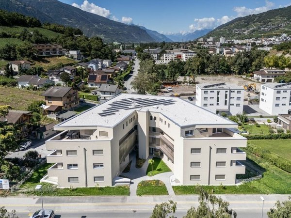La Résidence "Les Ceps" , construite au standard Minergie , se situe au milieu d'un quartier résidentiel calme à quelques centaines de mètres du lac de Géronde et du centre-ville.