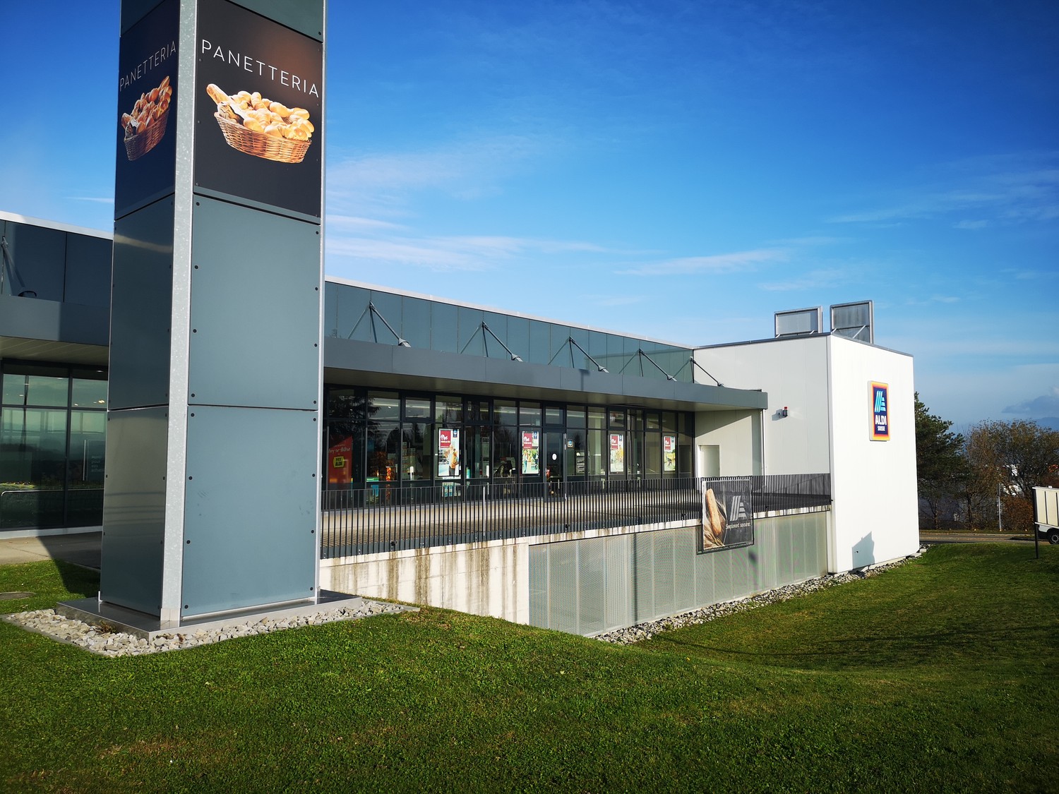 Lieferzone mit Rampe und elektrischem Sektionaltor