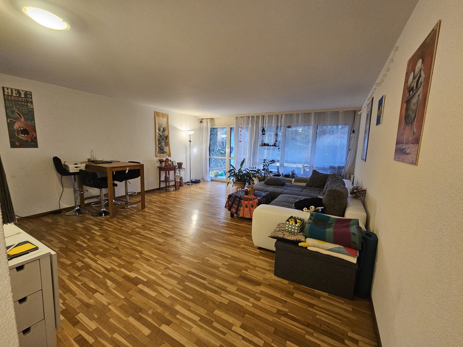 Der grosszügige Wohnraum bietet viel Platz zum Wohnen und Entspannen. Ein besonderes Highlight ist die Terrasse mit kleinem Rasenanteil, ideal zum Geniessen, Gärtnern oder für gemütliche Stunden im Freien.