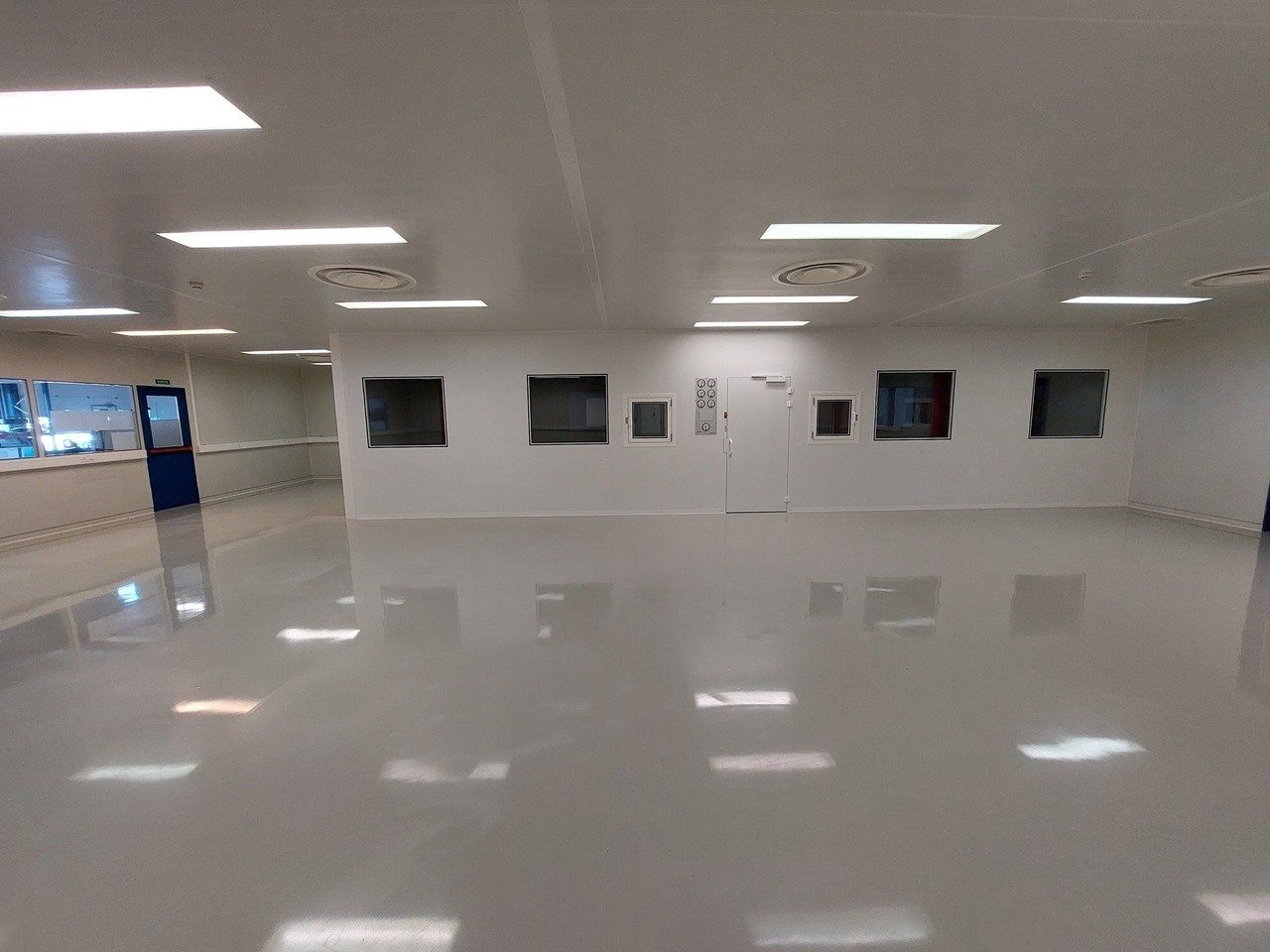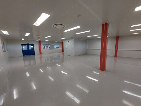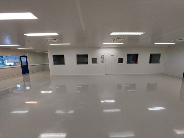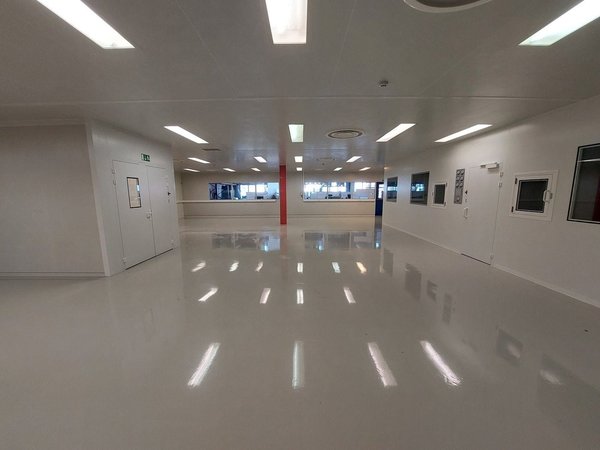 Aménagement - Affectation : Laboratoire / salles blanches - Surface : 350 m2 - Etage : Rez-de-chaussée - Vestiaires homme et femme - Surface stockage - 2 sas d'entrées - 1 laboratoire de 192 m2 - 2 laboratoires de 28 m2 - WC communs