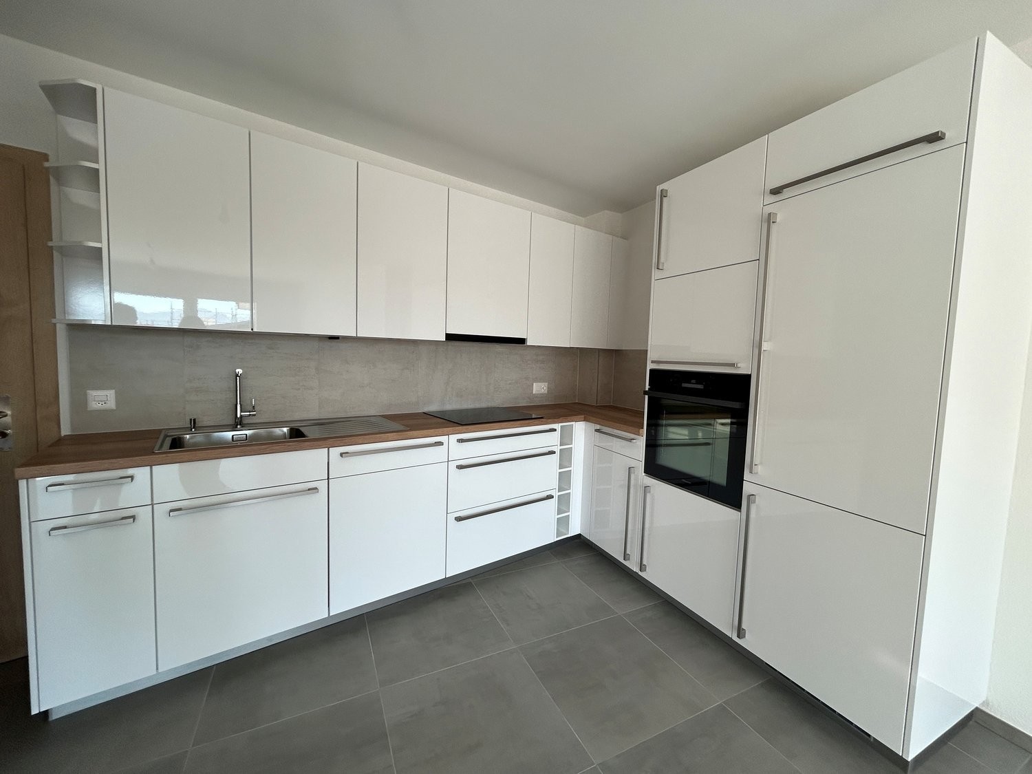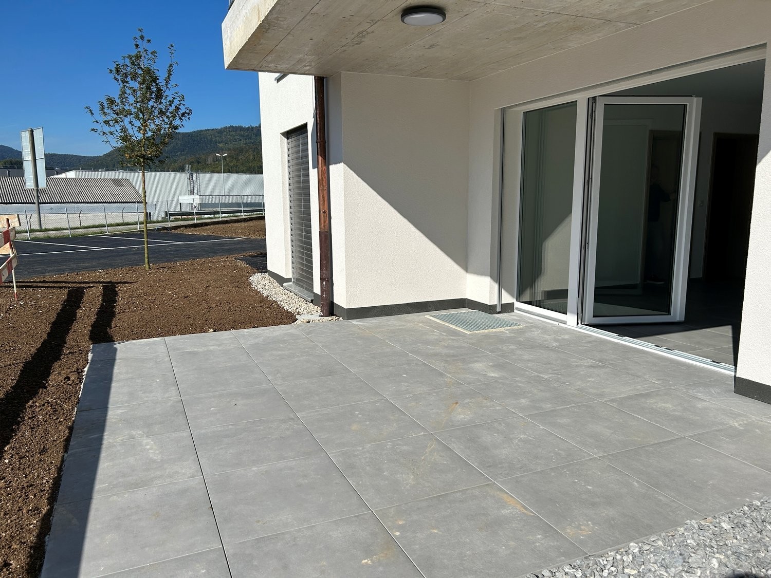Appartement neuf au rez comprenant une cuisine agencée ouverte sur le séjour, 3 chambres, une salle de bain avec baignoire/WC avec colonne de lavage, un wc séparé, une terrasse.