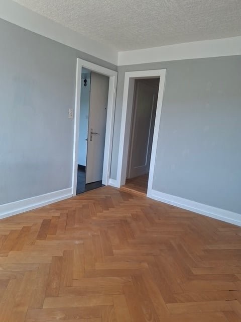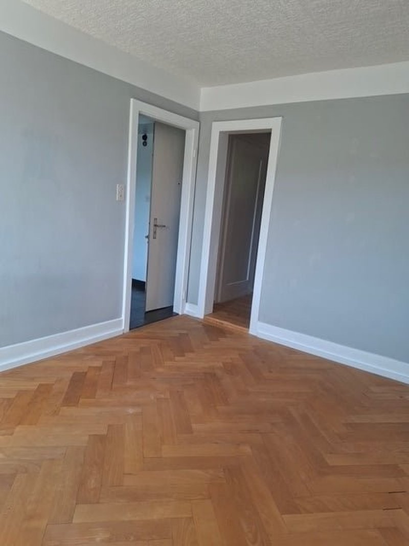 Pièces spacieuses et agréables : Avec parquet et murs clair.