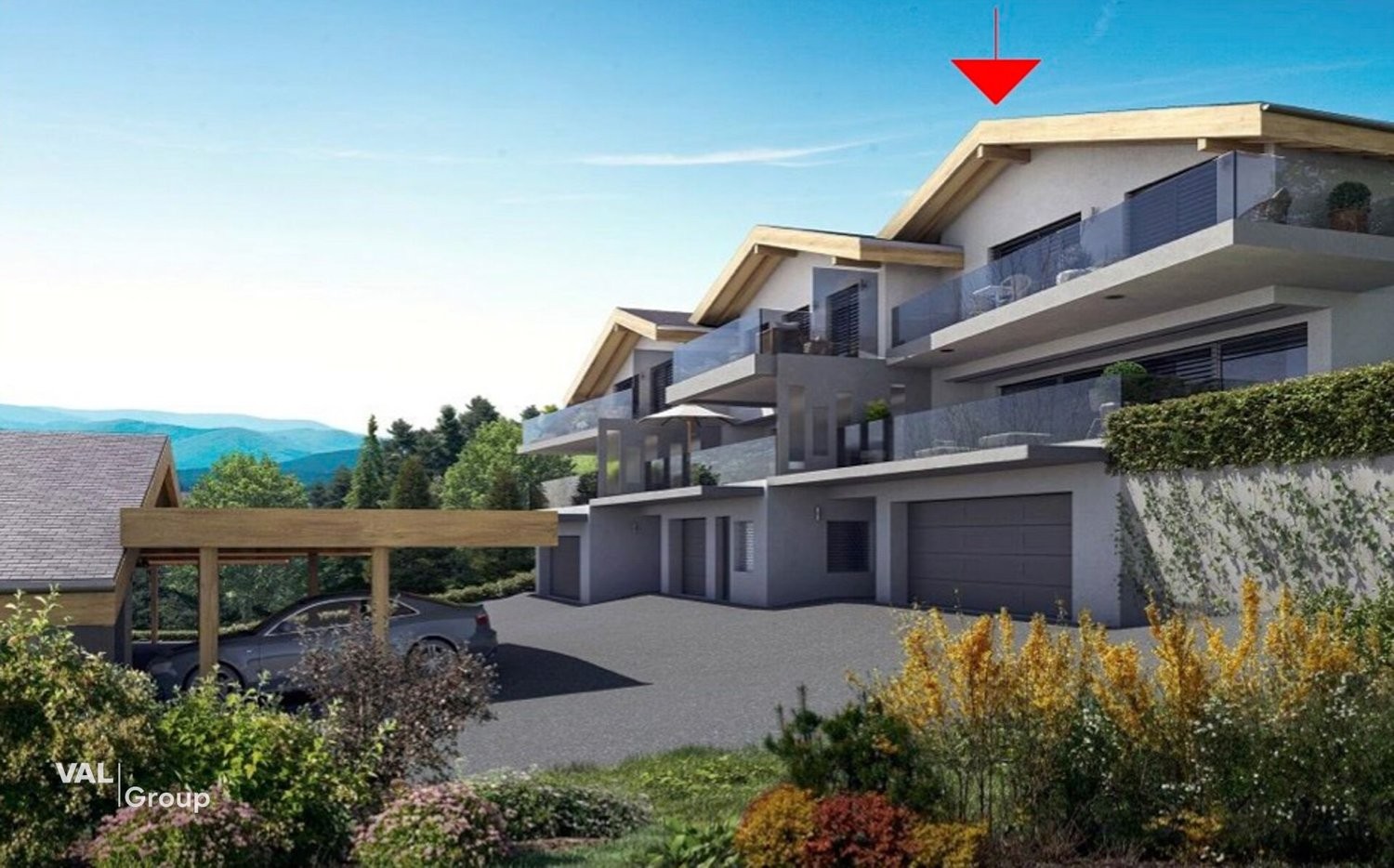 La villa bénéficie d'un jardin privatif, véritable prolongement naturel de l'espace de vie. Les terrasses et balcons permettent de profiter pleinement de l'environnement et de la vue exceptionnelle sur la vallée.