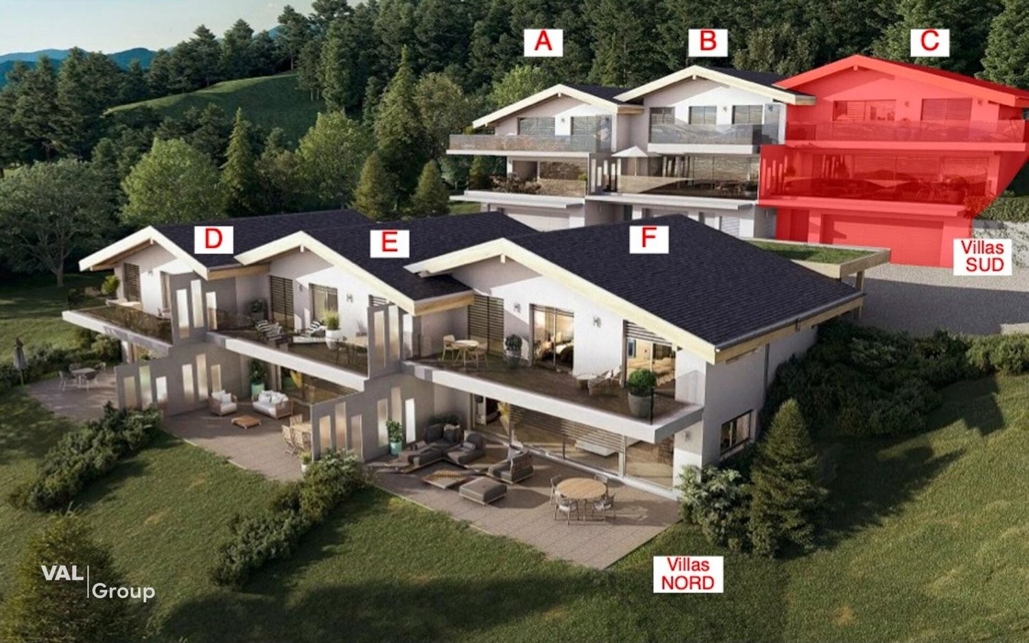La villa bénéficie d'un jardin privatif, véritable prolongement naturel de l'espace de vie. Les terrasses et balcons permettent de profiter pleinement de l'environnement et de la vue exceptionnelle sur la vallée.