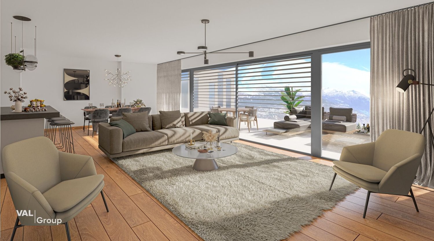 Dominant la vallée du Rhône, dans un quartier résidentiel calme et privilégié à seulement quelques minutes de Sion, cette villa contemporaine de 4.5 pièces offre un cadre de vie idéal pour celles et ceux qui recherchent espace, luminosité et confort au quotidien. Intégrée dans un ensemble harmonieux de six villas, elle fait partie des trois villas orientées plein sud et prend place sur une parcelle d'environ 440 m², dont 172 m² de jardin privatif. Son architecture soignée, ses volumes généreux et ses espaces extérieurs ouverts sur un panorama remarquable en font un lieu de vie particulièrement agréable.