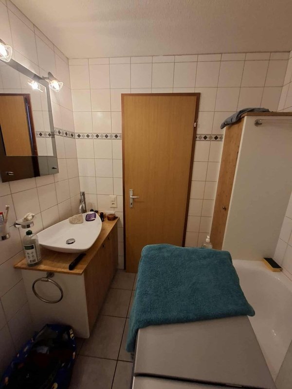 L'appartement se compose d'une chambre, une salle de bain avec baignoire, une cuisine ouverte sur le salon.