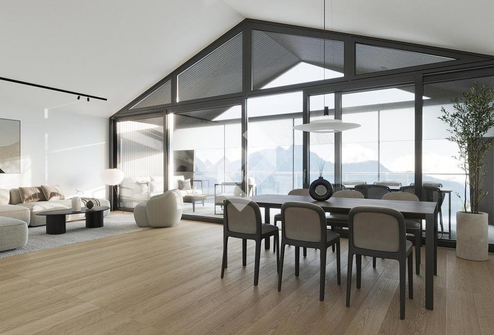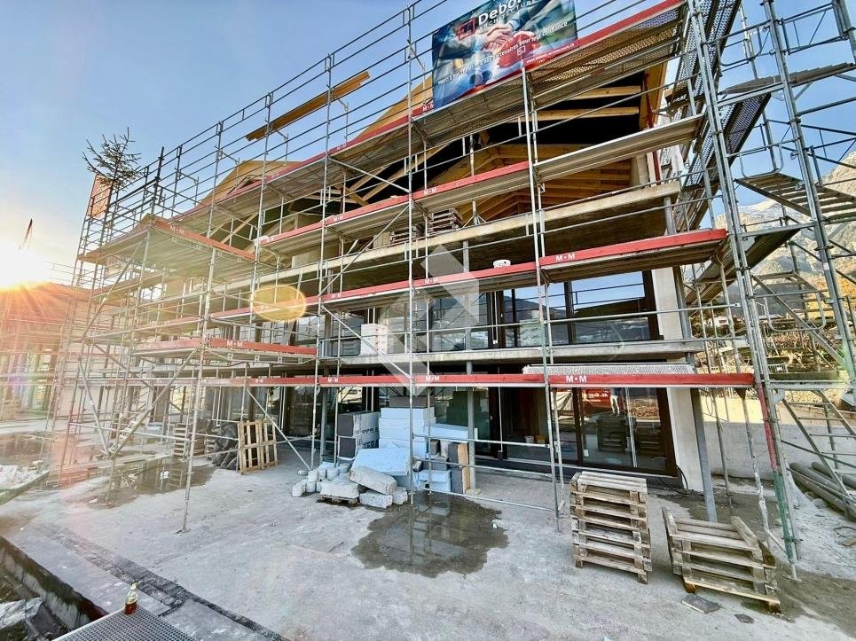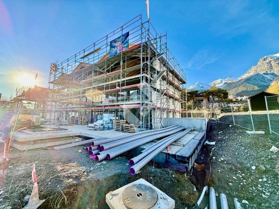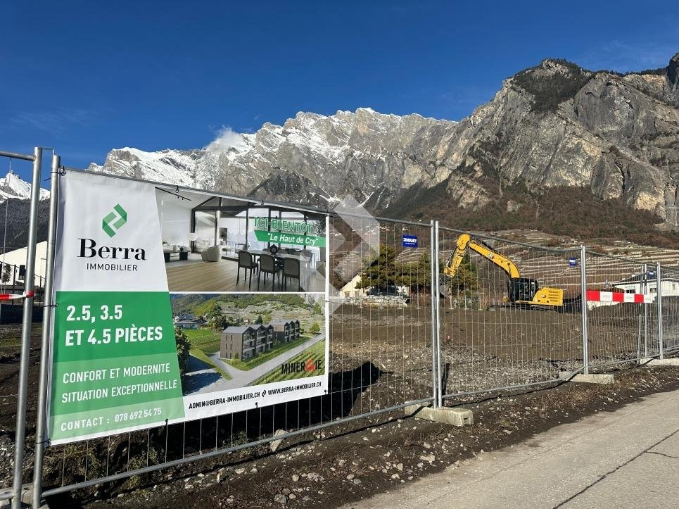 18 appartements agréablement répartis en 2 petits immeubles au design moderne et élégant au coeur du vignoble valaisan dont la conception se marie parfaitement avec le relief minéral et offre un rappel des falaises toutes proches.