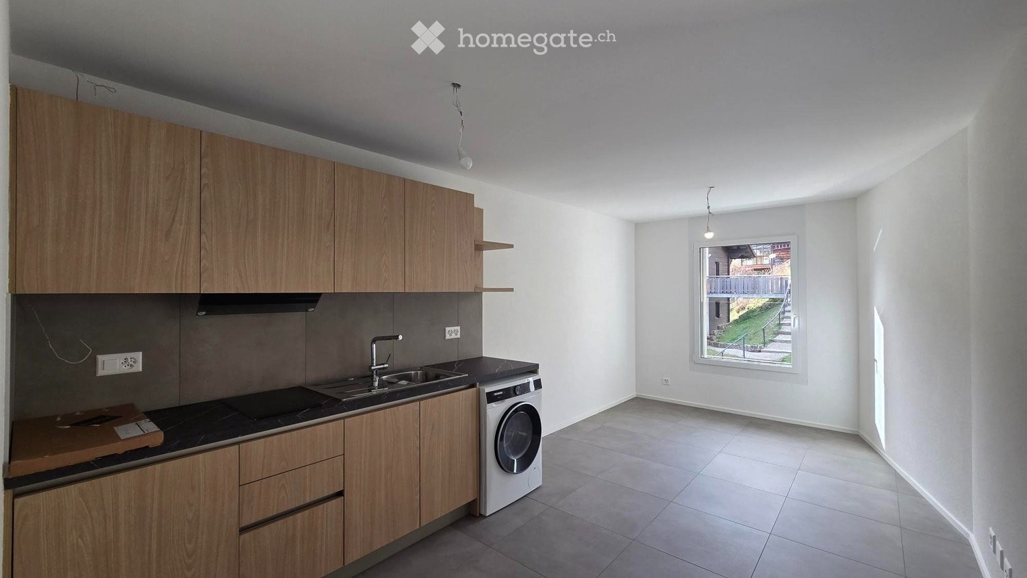 Découvrez ce charmant studio de 24m² situé au 1er étage d'un bâtiment neuf de la résidence "GRENAT" située au centre-ville de Gryon comprenant: