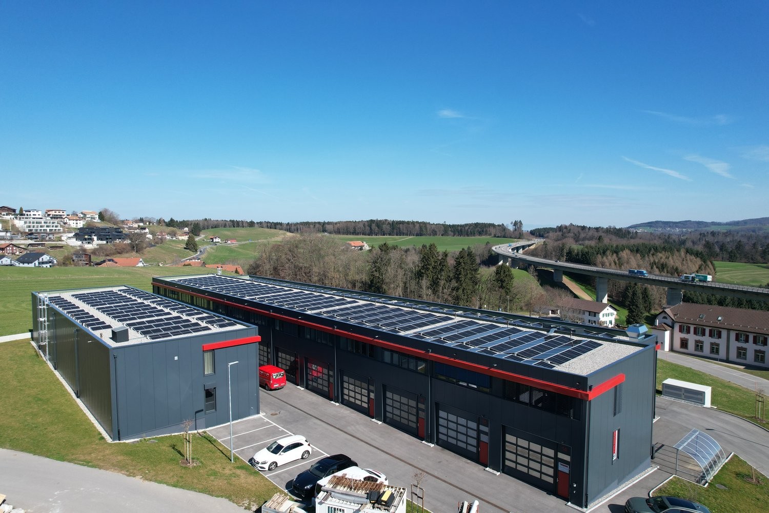 Le Parc d'Ogoz est idéalement situé en bordure de l'autoroute A12, avec un accès direct via la sortie de Rossens. Le Bry se trouve à proximité immédiate des villes dynamiques de Fribourg et Bulle, offrant ainsi un bassin économique en développement. De plus, un arrêt de bus à proximité facilite l'accessibilité pour vos collaborateurs et clients.