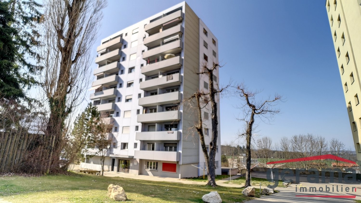 L'appartement se situe à la Route de Villars-Vert 21, proche du centre commercial Coop, de l'autoroute, de l'école et d'un arrêt de bus.