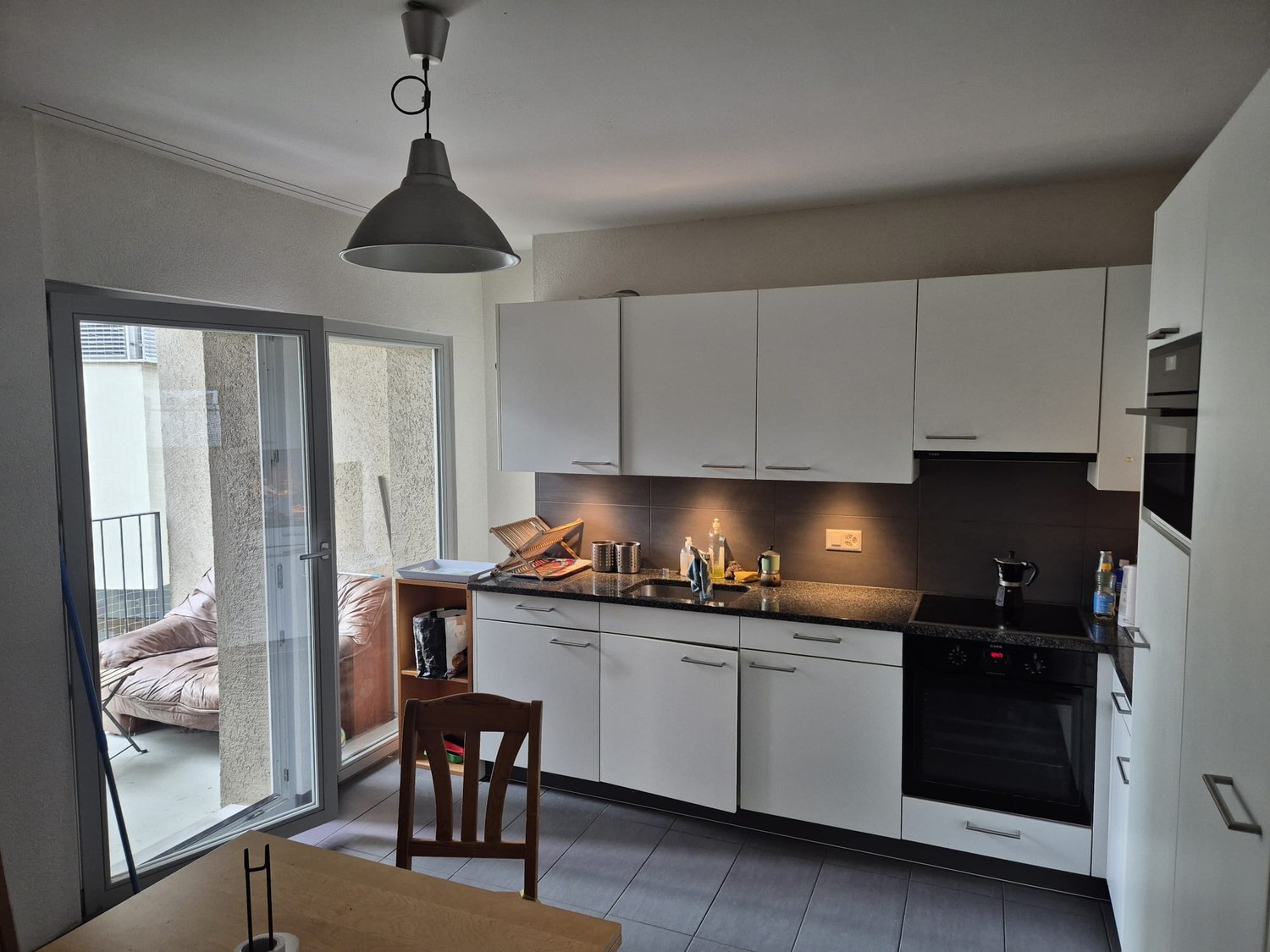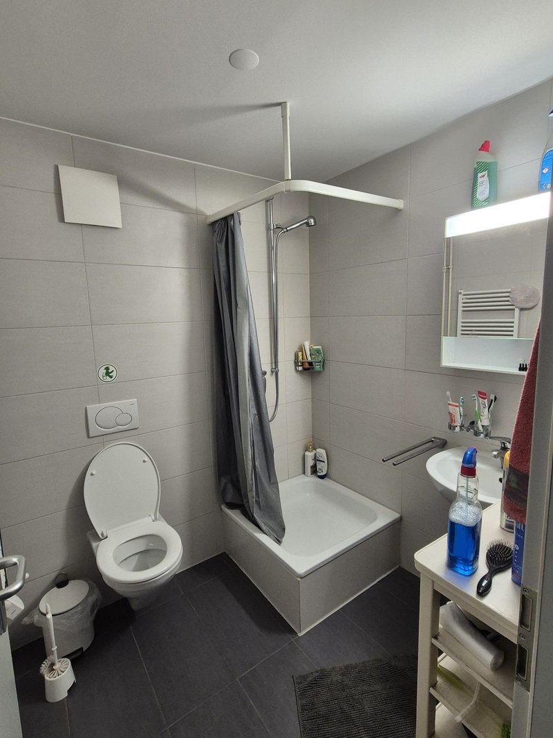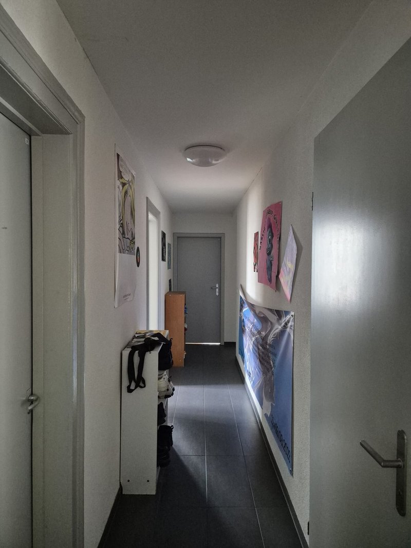 The apartment is on the first floor and only a 4-minute walk from a Denner supermarket, the Fribourg Industrie bus stop, and the various university buildings located in Pérolles.