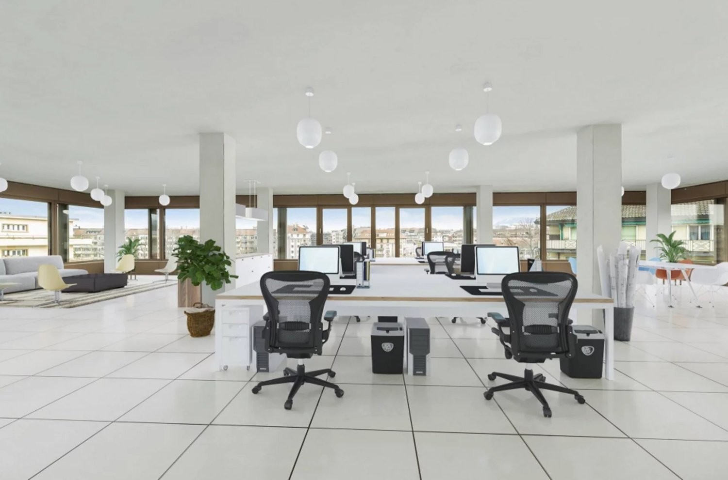 Le bâtiment fraichement rénové est positionné dans le quartier dynamique et en plein mutation des Acacias, à seulement quelques minutes de l'hyper centre.
