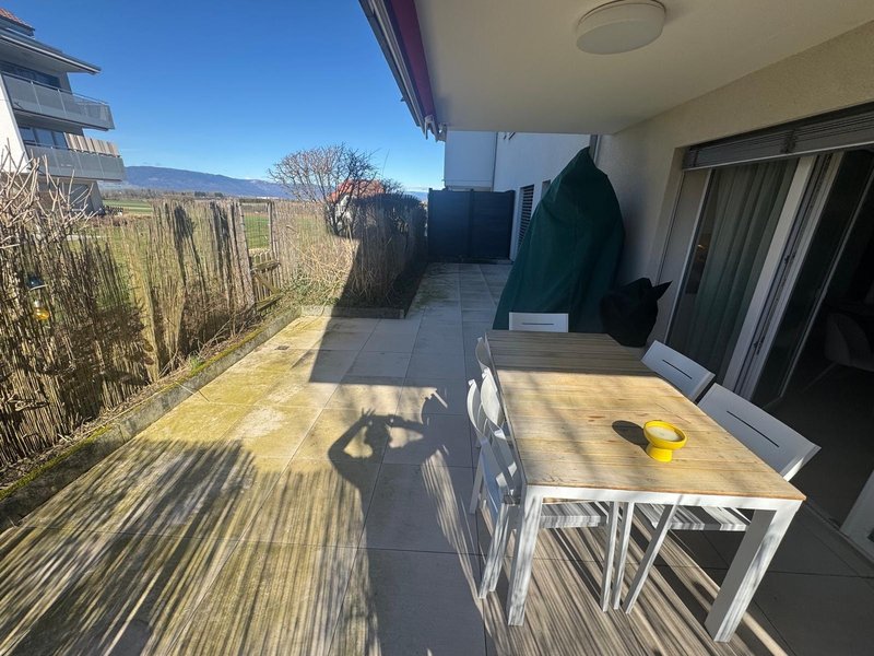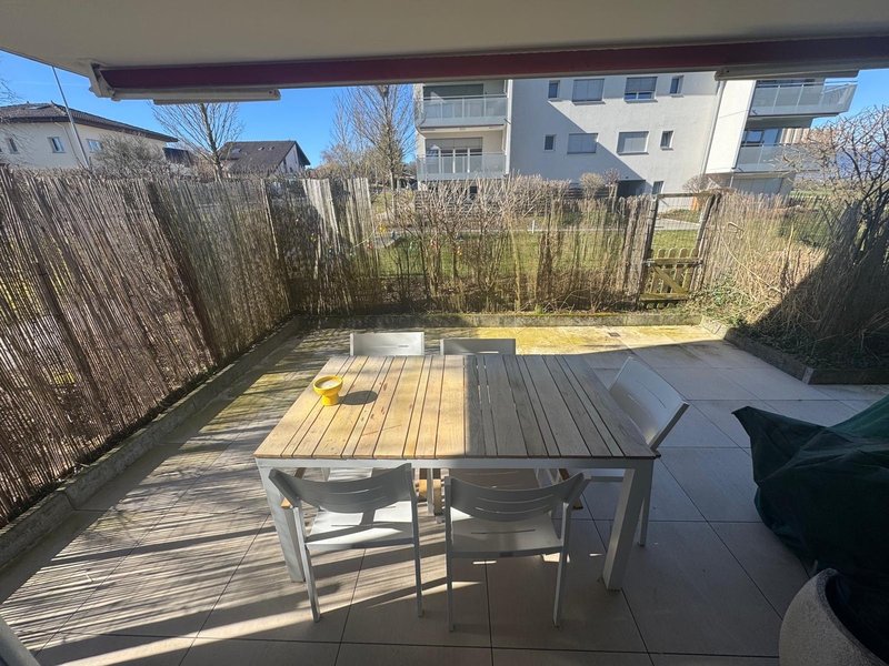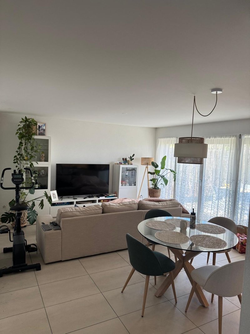 Jolie 3,5 pièces avec terrasse , situé au Rez de chaussée d'un immeuble récent avec ascenseur, cet appartement vous offre un hall d'entrée avec armoires encastrées , deux chambres, une salle de douche, une salle de bains avec fenêtre et colonne de lavage, une cuisine équipée ouverte sur le séjour ouvrant sur la terrasse orientation sud.