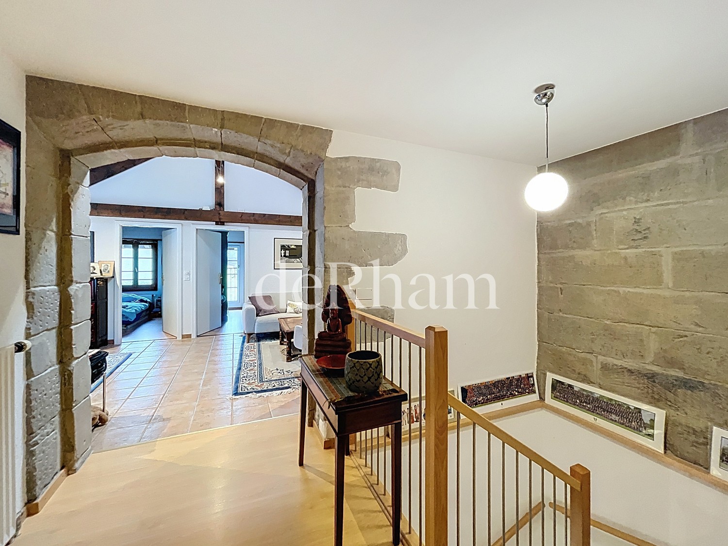 Cet appartement en duplex d'env. 103 m2, situé au rez-de-chaussée et doté d'une grande terrasse privative, offre de magnifiques volumes ainsi qu'un charme indéniable. Les poutres apparentes, les boiseries anciennes et les encadrements en molasse lui confèrent un cachet authentique et chaleureux.