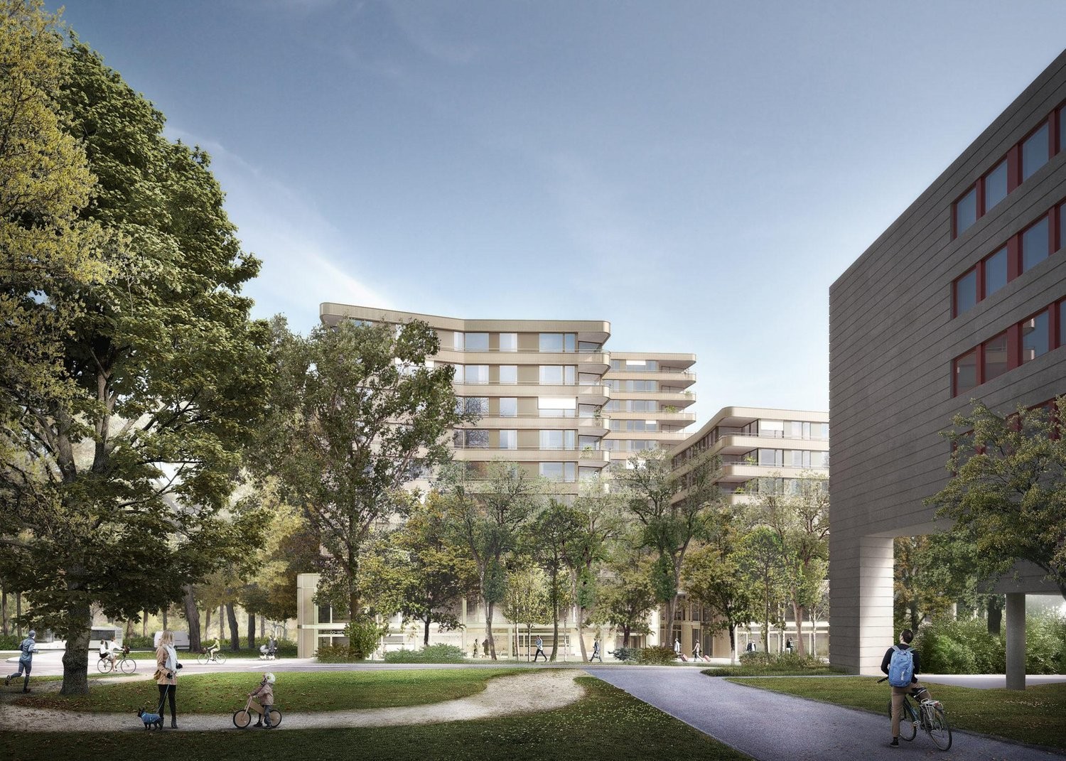 Les locaux à louer sont situés dans un programme de 3 bâtiments, qui offriront plus de 16'000 m2 d'espace à usage mixte, répartis entre des zones résidentielles, administratives et commerciales, permettant une vie de quartier animée.