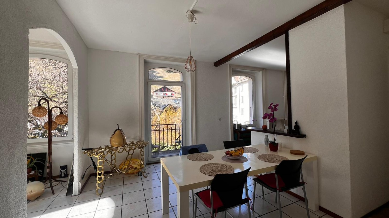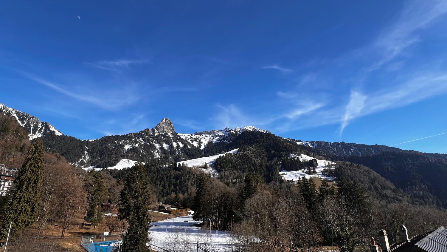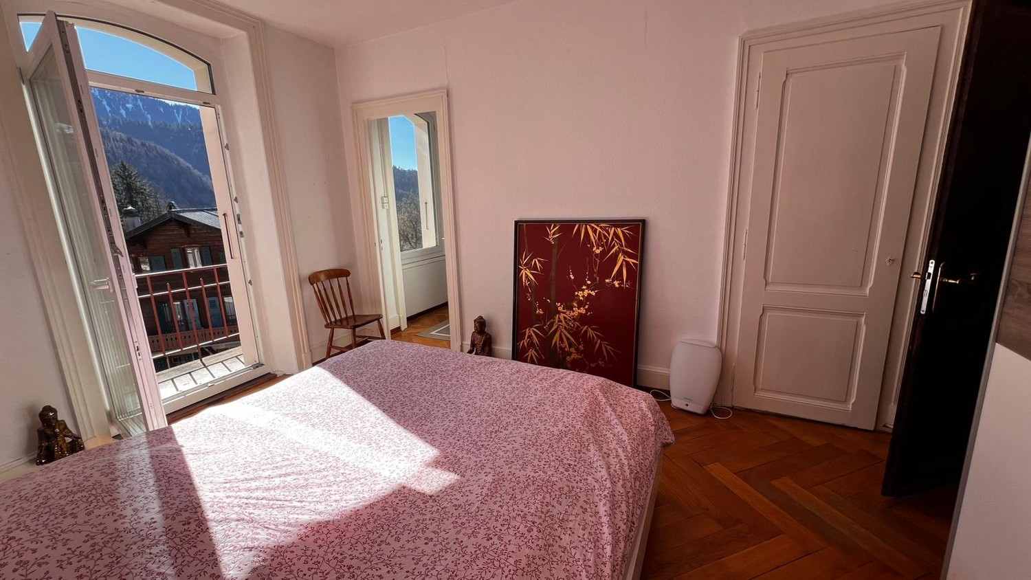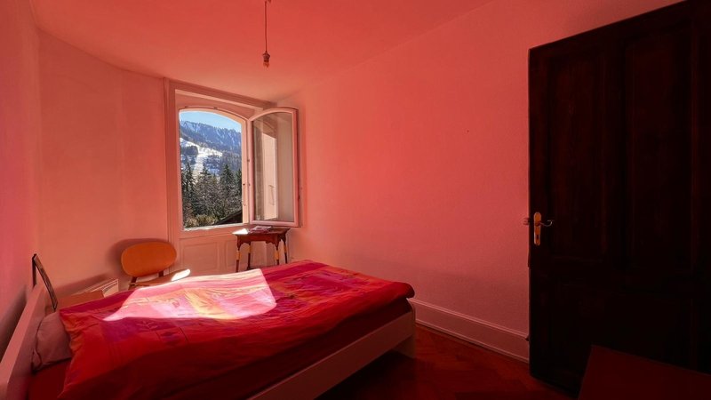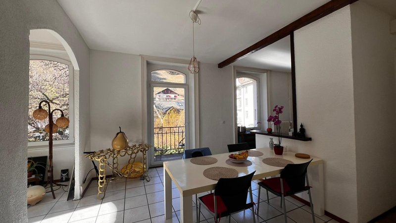 L'appartement dispose également d'un second balcon accessible depuis l'une des chambres et bénéficie d'une agréable vue sur la Dent de Jaman, parfait pour profiter d'un environnement paisible.