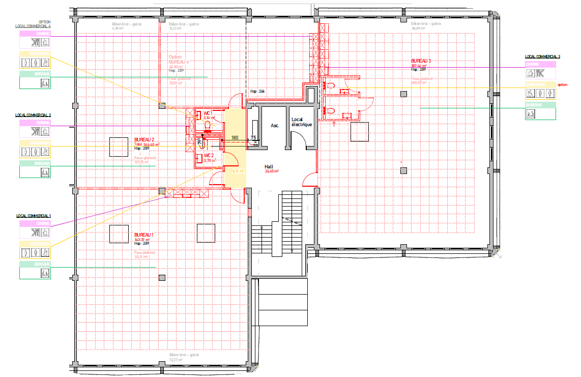 Au 2ème et dernier étage, les surfaces sont louables pour des bureaux open-spaces (surfaces de 60 à 180 m²) ou simplement pour du stockage de matériel. Un ascenseur dessert ces surfaces depuis un quai de chargement à l'arrière du bâtiment.