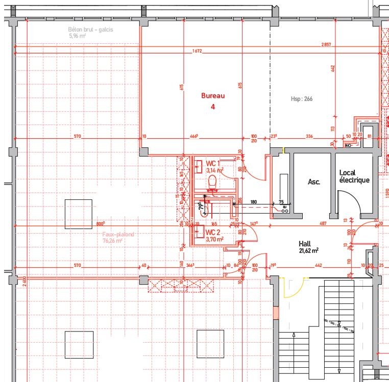 Les sanitaires sur l'étage sont inclus dans le loyer et sont à usage commun. Un ascenseur (1000 kg) dessert ces surfaces depuis un quai de chargement à l'arrière du bâtiment.
