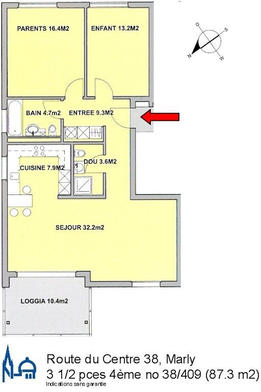 L'appartement a une surface de 87.3 m2 et dispose d'un balcon ensoleillé avec toile à soleil électrique. Il se trouve au 4ème étage et est facilement accessible avec ascenseur.