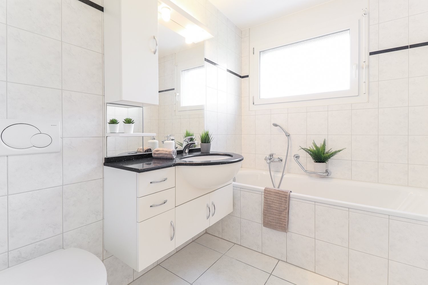 dotés de carrelage clair, ce qui leur procure beaucoup de luminosité.