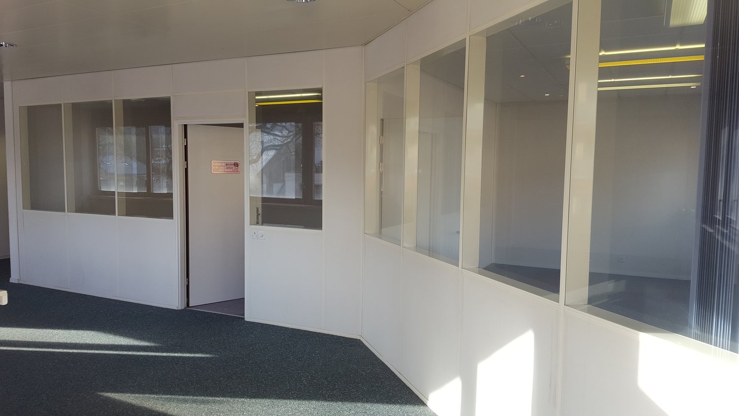 À louer, une surface administrative de 51 m2, composée de deux pièces séparées par une paroi vitrée, située à la Route du Châtelet à Marly, à proximité immédiate des lignes de bus et du centre de Marly.