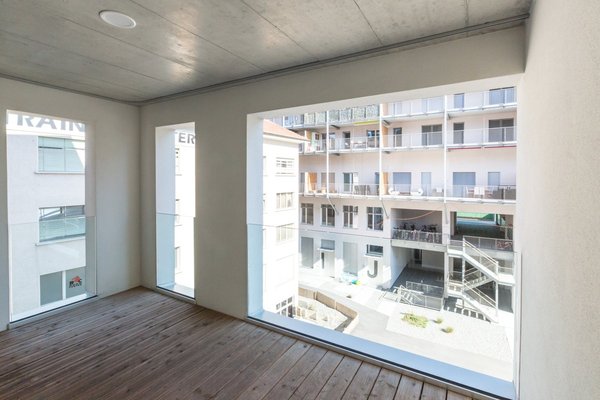 Cet appartement est composé d'une cuisine agencée ouverte sur un spacieux séjour donnant sur une loggia d'env. 10 m².