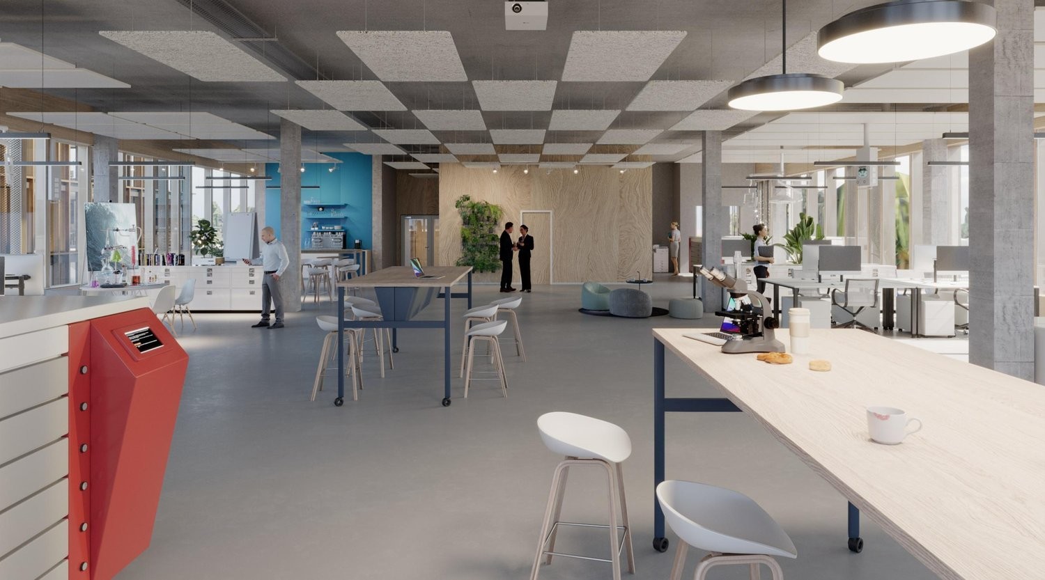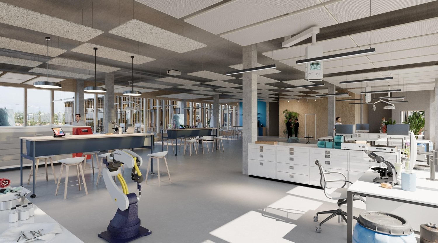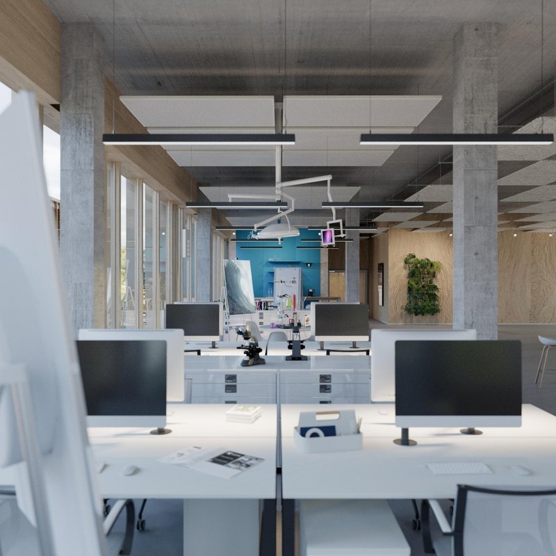Surfaces industrielles qualitatives dans un immeuble neuf dès 350 m², situé au cur du campus The Hive à Meyrin.
