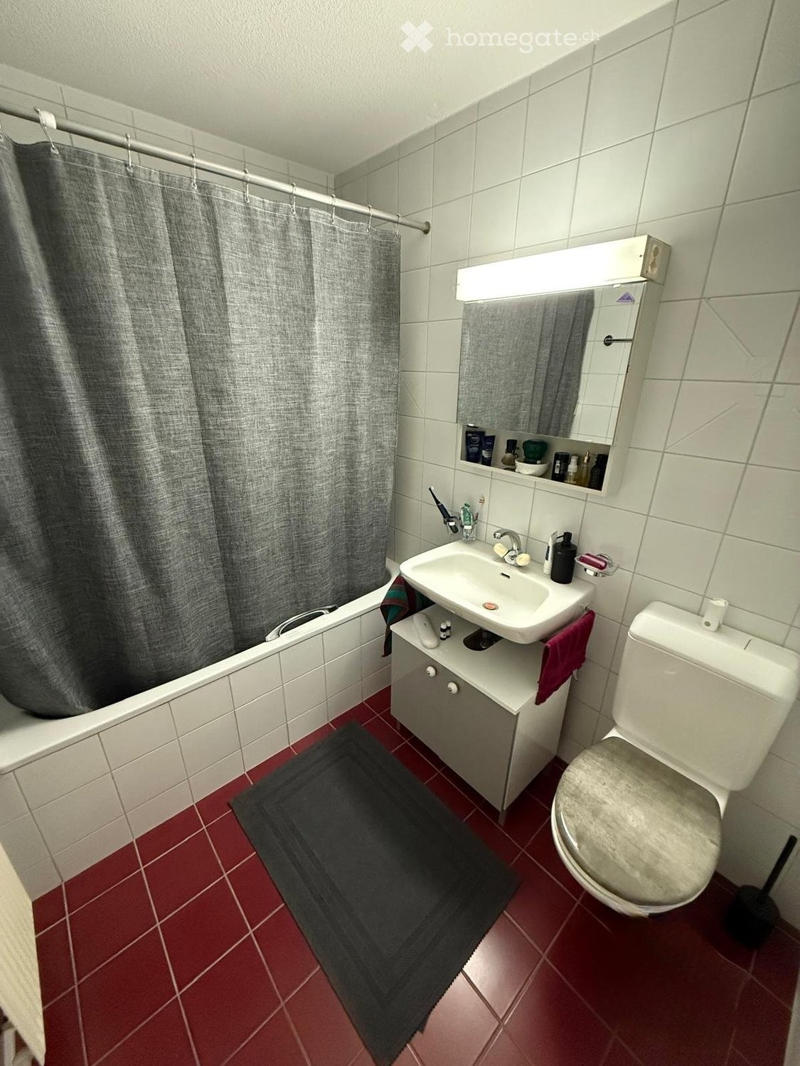 Une salle de bain, WC + baignoire