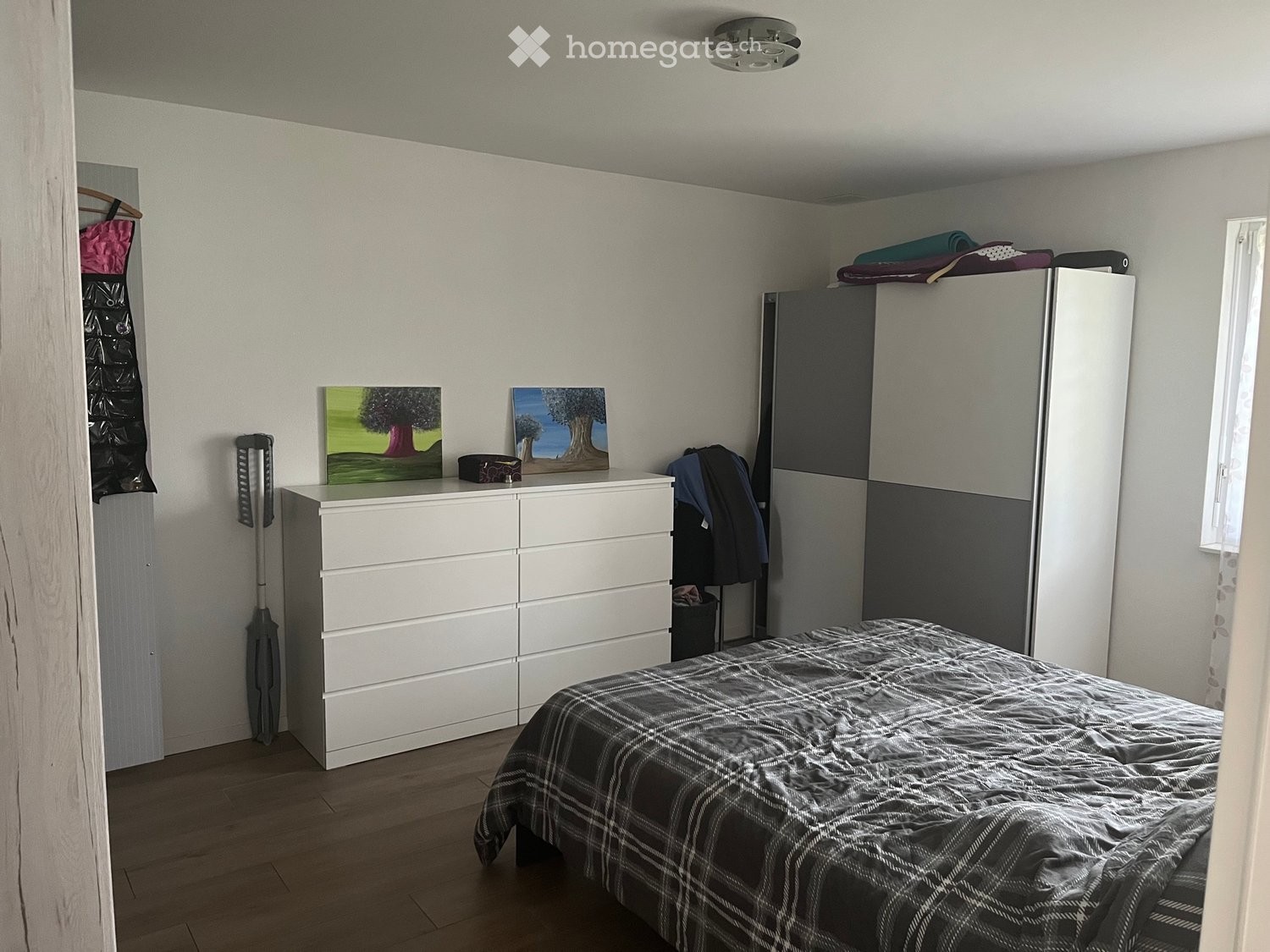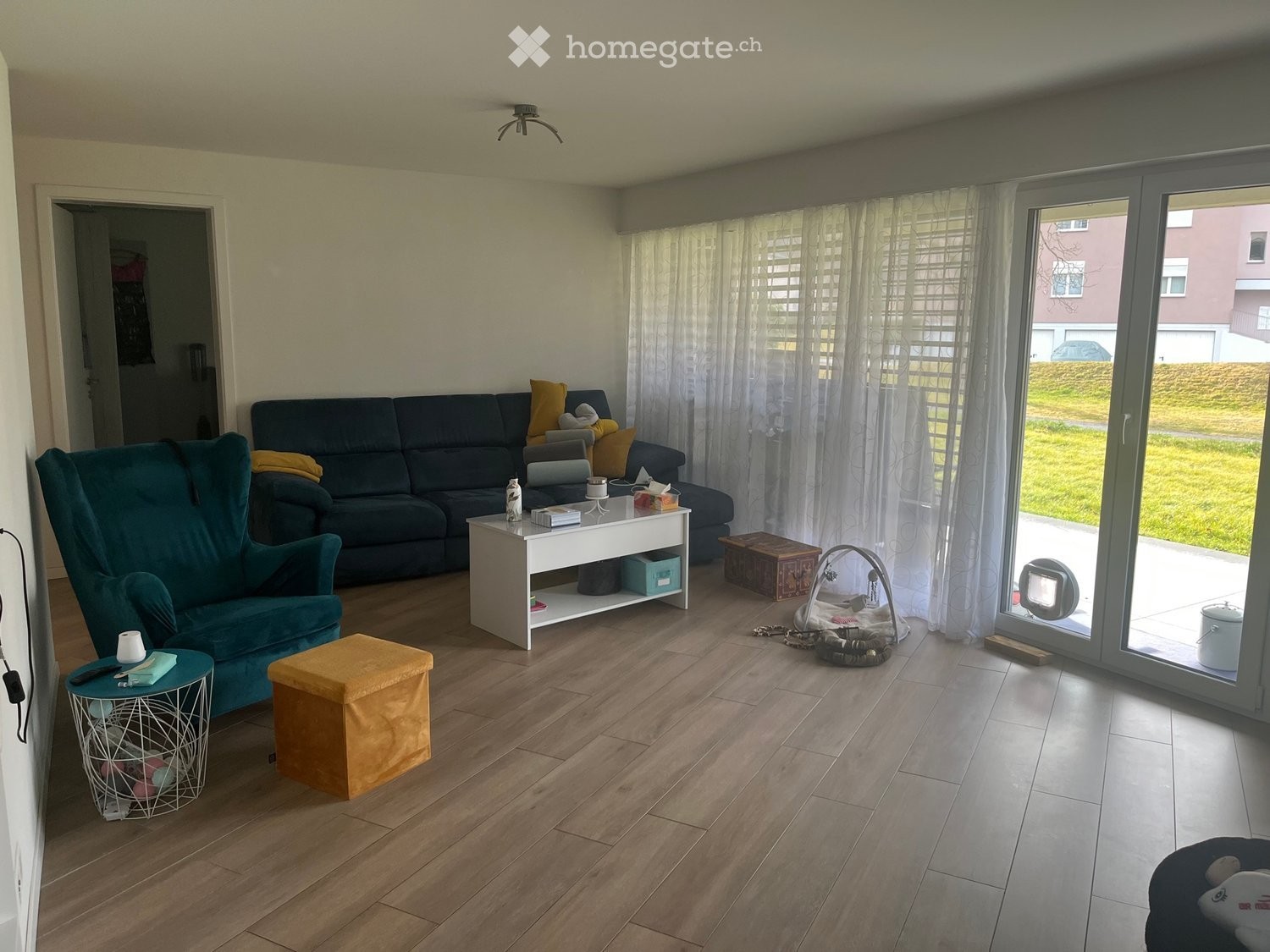 3,5 pièces avec 2 grandes chambres. Une salle de bain et un toilette séparé. Possibilité davoir une place de parc (60chf) et un box/garage (120chf)