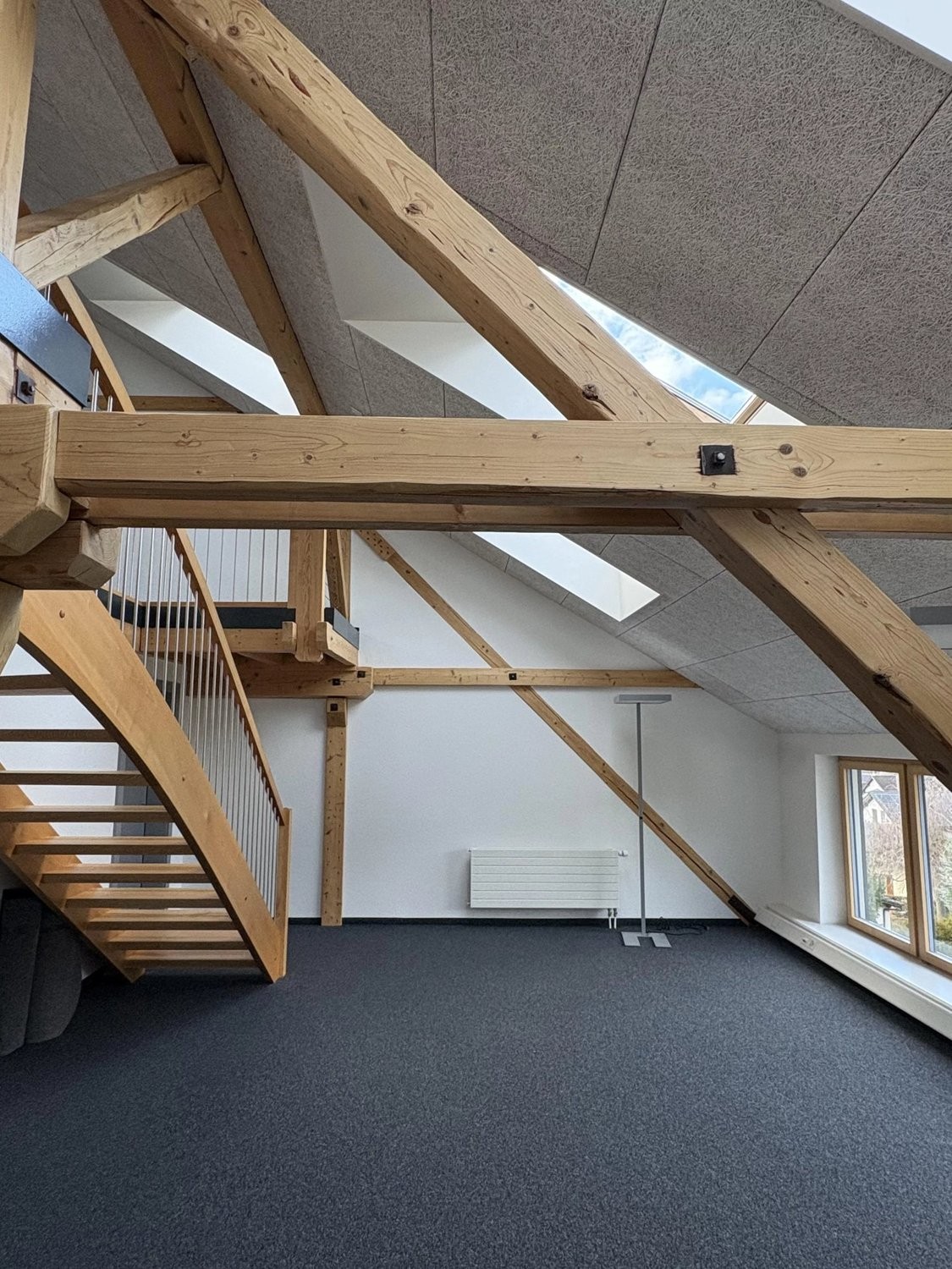 Situé au 1er étage, de l'ancien arsenal entièrement rénové en 2016, cette belle surface de 90 m² en duplex (lot 23a) offre un espace idéal pour diverses activités professionnelles.